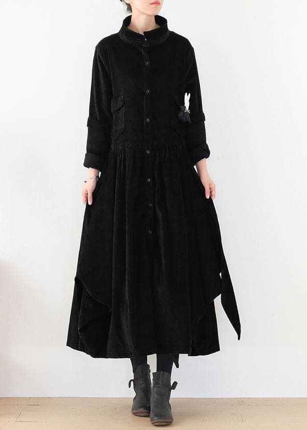 Beautiful false two pieces polo collar coats women black loose outwears