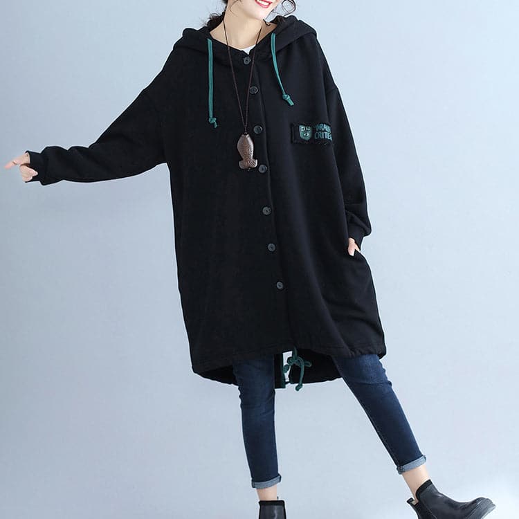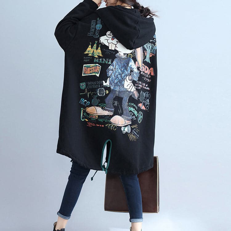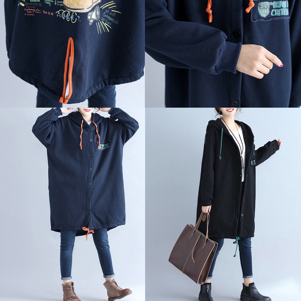 black fashion back prints cotton trench coats plus size hooded winter outfits
