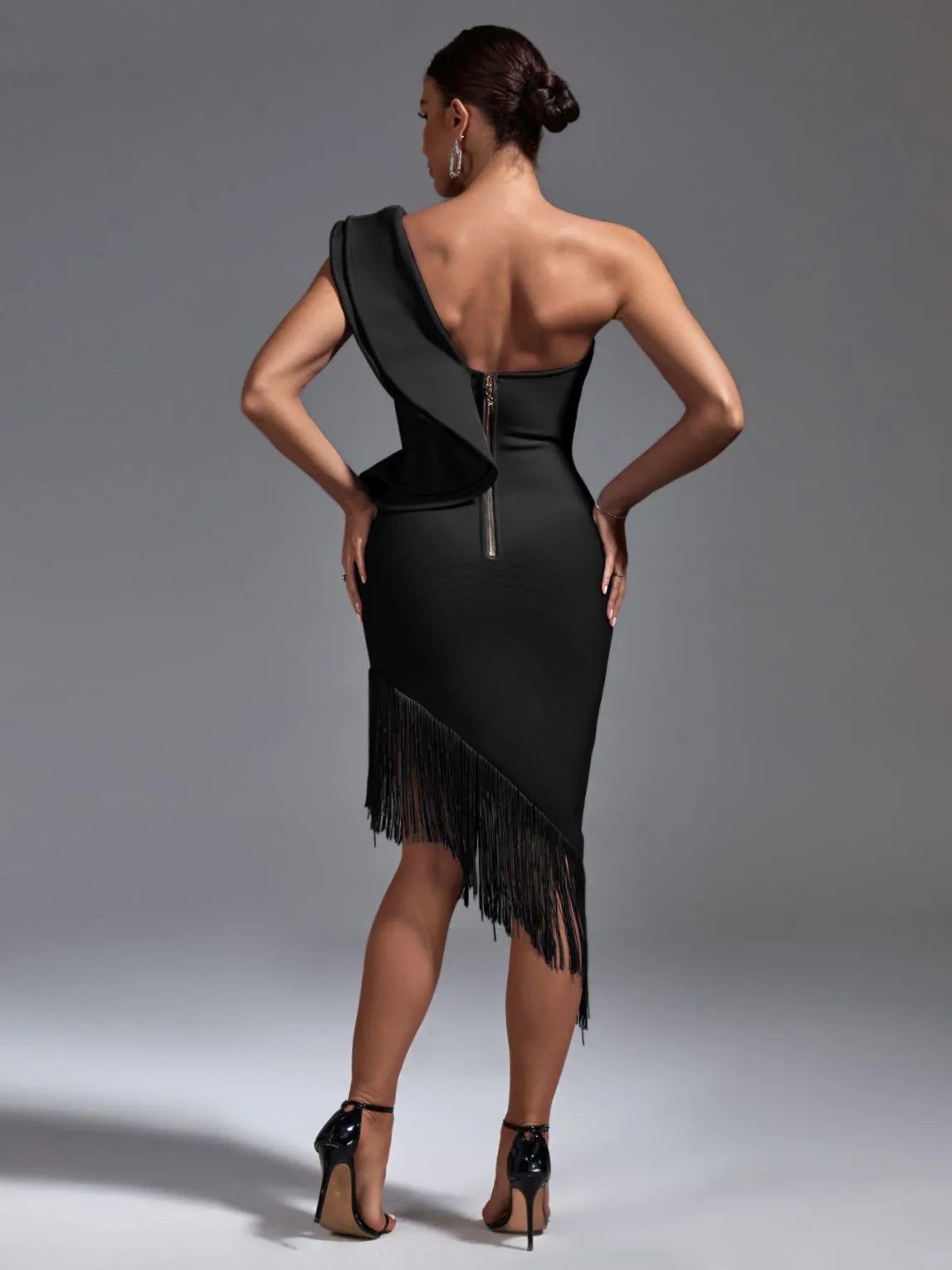 Our Black Ruffle One-Shoulder Dress is your go-to choice for a wide range of occasions, from club nights to wedding celebrations, celebrity evenings to cocktail parties, and even runway shows. The classic black color exudes confidence and elevates your fashion game to a whole new level.