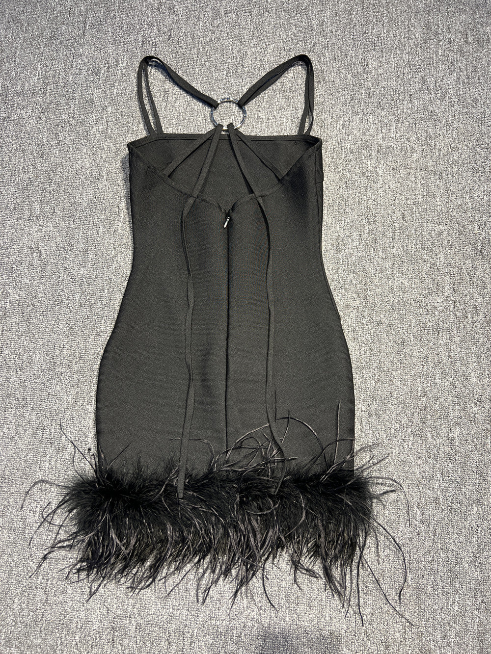 Introducing our Black Spaghetti Strap Feather Dress, a stunning and trendy piece that will make you stand out at any event. This dress is designed to combine style and comfort, ensuring you look and feel your best.