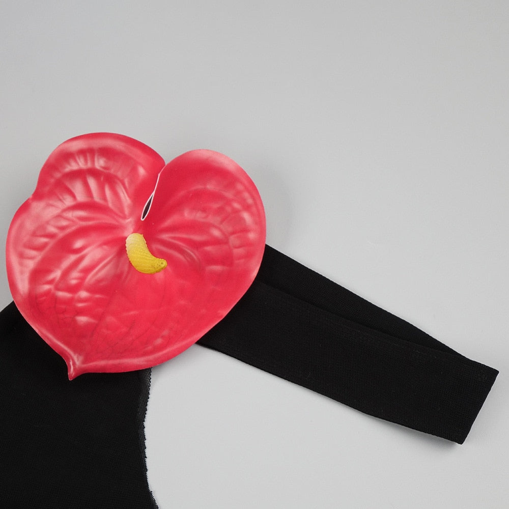This stunning Black TranslucentMaxi Dress is a statement piece for your next special occasion, featuring a red 3D flower to give it that extra feminine look. Style with pumps for the classiest look! The perfect outfit for a club party or photo shoot.
