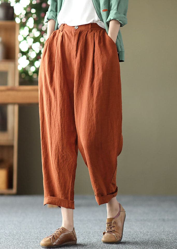 Bohemian Orange High Waist Pockets Original Design Linen Harem Pants Summer