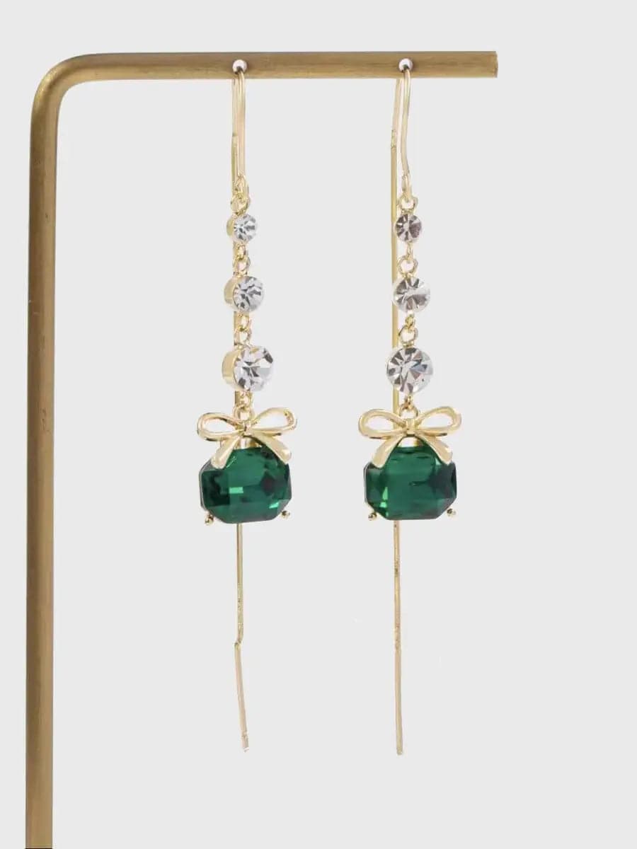 Bow Green Zircon Wire Earrings MSE101038