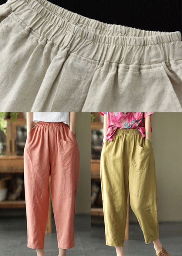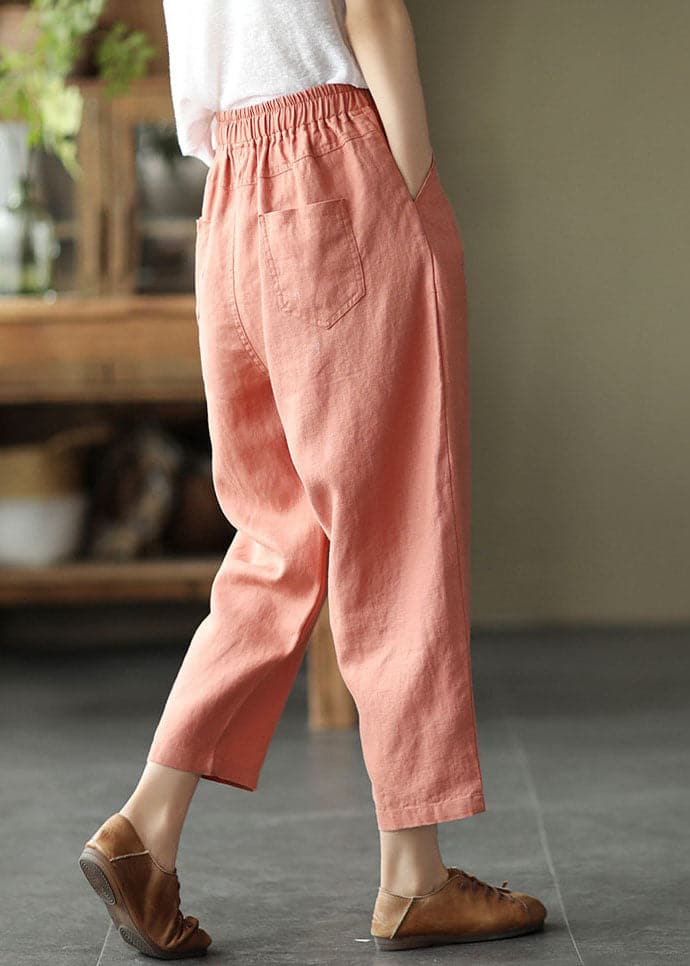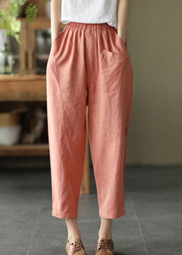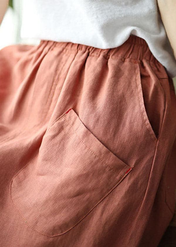 Brief Orange Original Design Pockets Linen Harem Pants Summer