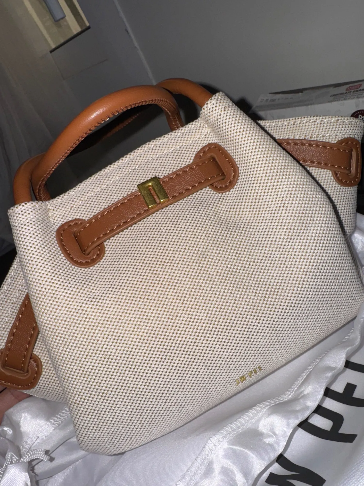 The combination of sturdy canvas and high-quality vegan leather creates a lightweight yet structured bag that holds your phone, wallet, keys, and small essentials with ease. The adjustable shoulder strap allows for hands-free comfort, while the mini size keeps your look simple, practical, and stylish.