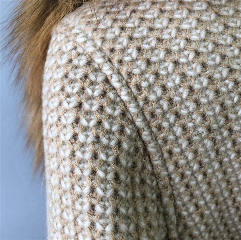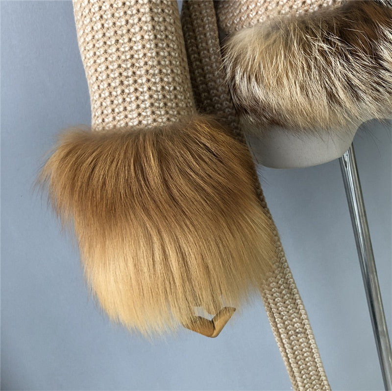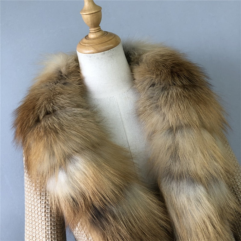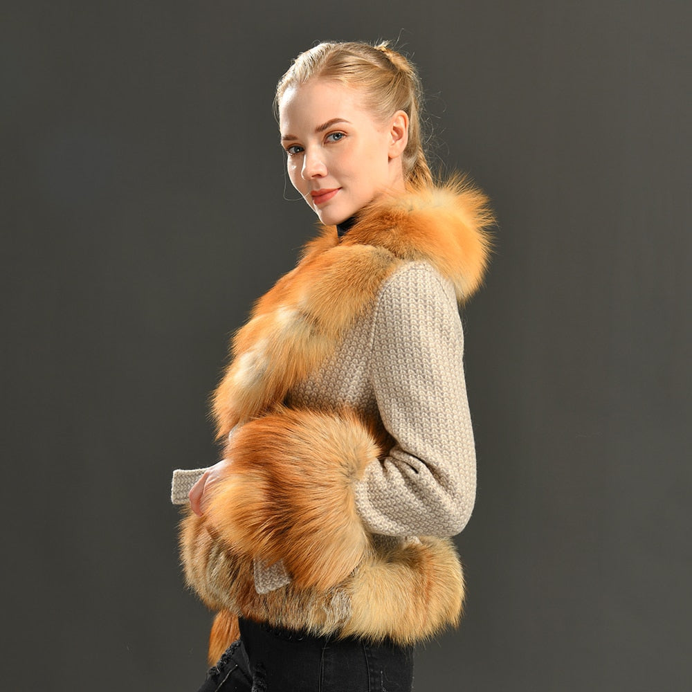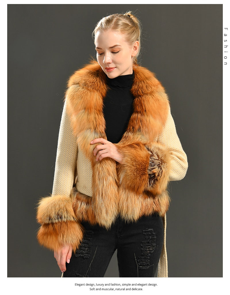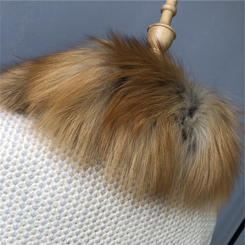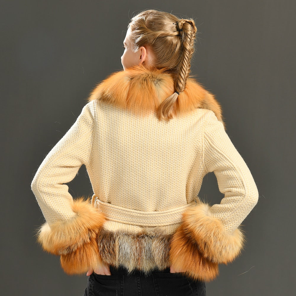 Natural Fur Collar Outerwear Luxury Thick Warm Short Jacket with Belt