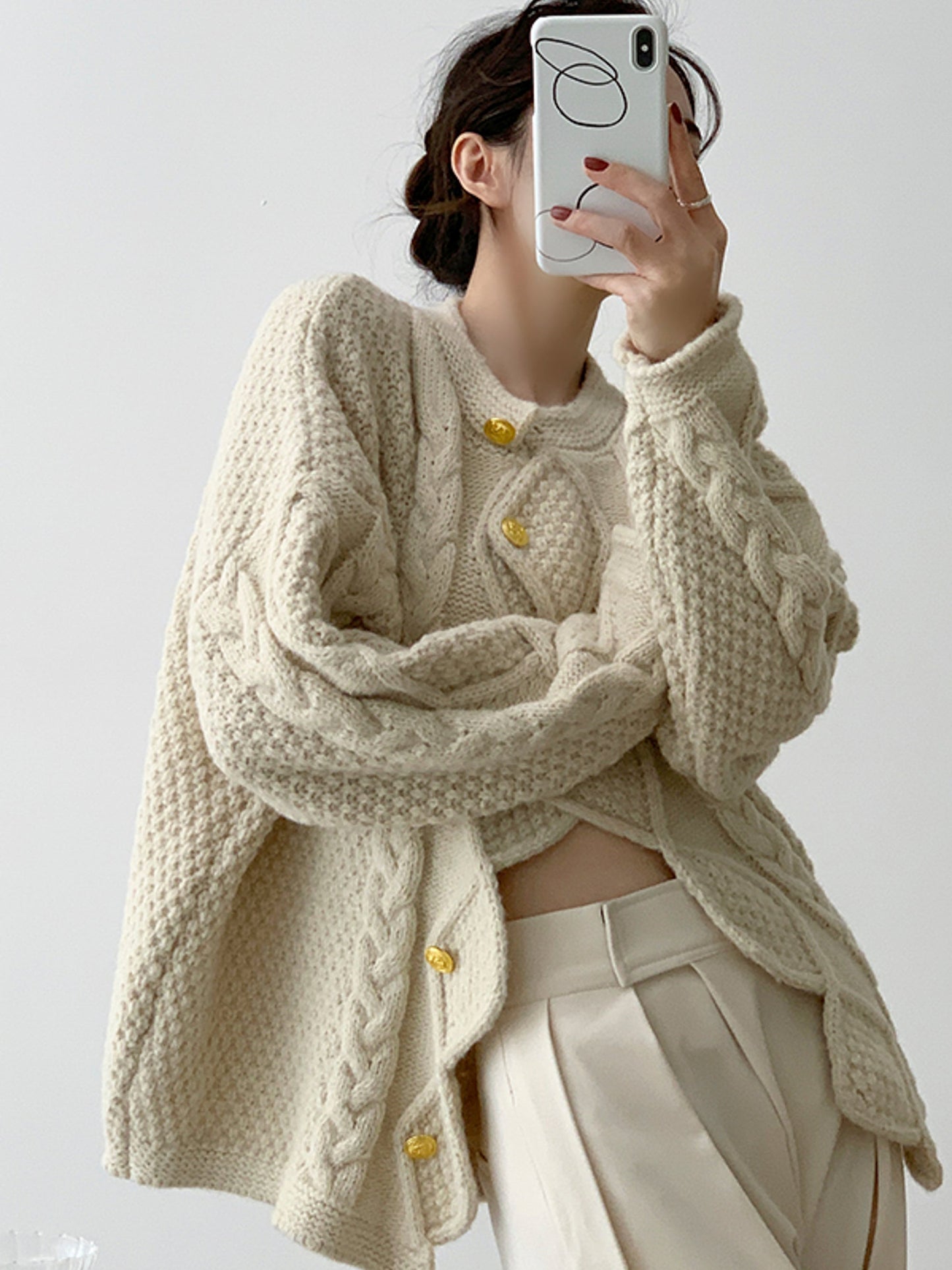 English Description: Elevate your autumn style with this exquisite Irregular Cable Knit Sweater for women. Its unique, high-end design exudes an air of casual sophistication, making it perfect for the season.