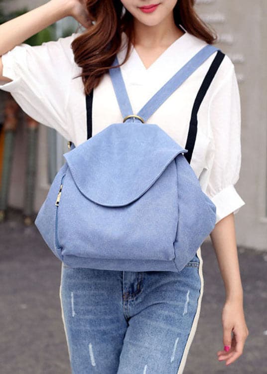 Chic Blue Solid Large Capacity Canvas Satchel Handbag