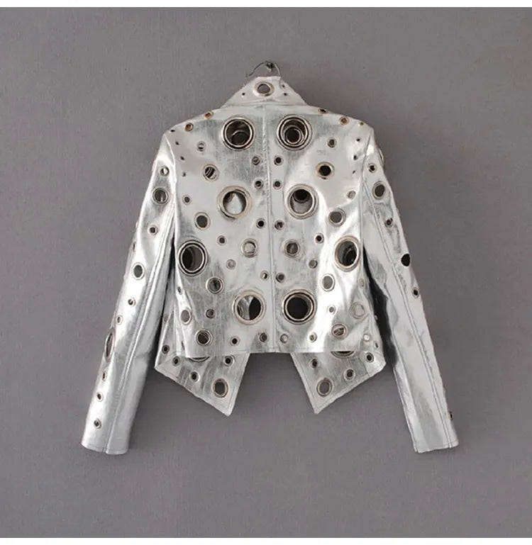 Whether you're heading out for a night on the town or looking to spice up your daytime look. this "Chic Faux Leather Cut-Out Crop Jacket" is your go-to for a fashion-forward statement that's bound to turn heads.