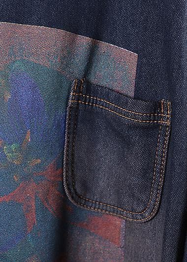 Classy blue prints Fashion trench coat Inspiration two big pockets thick coats