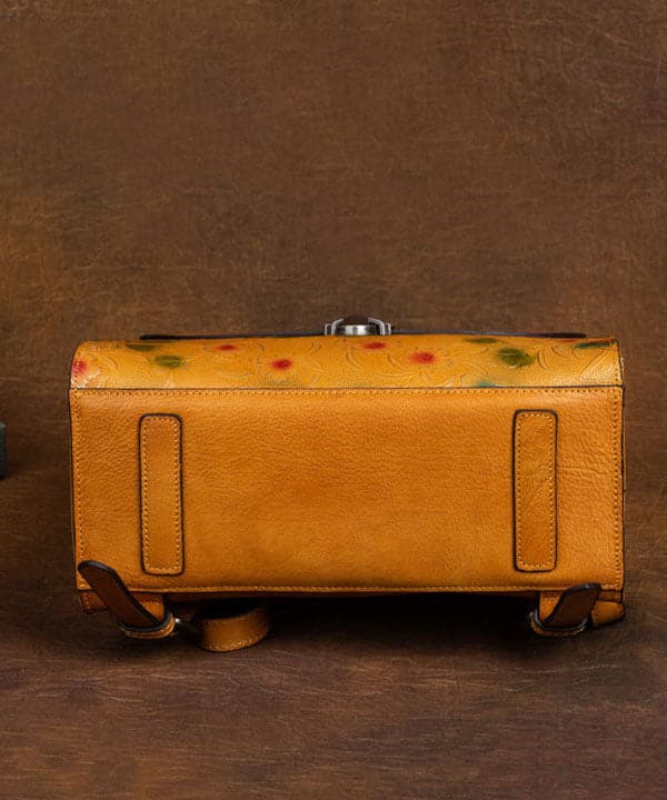 Classy Yellow Embossing Paitings Calf Leather Backpack Bag