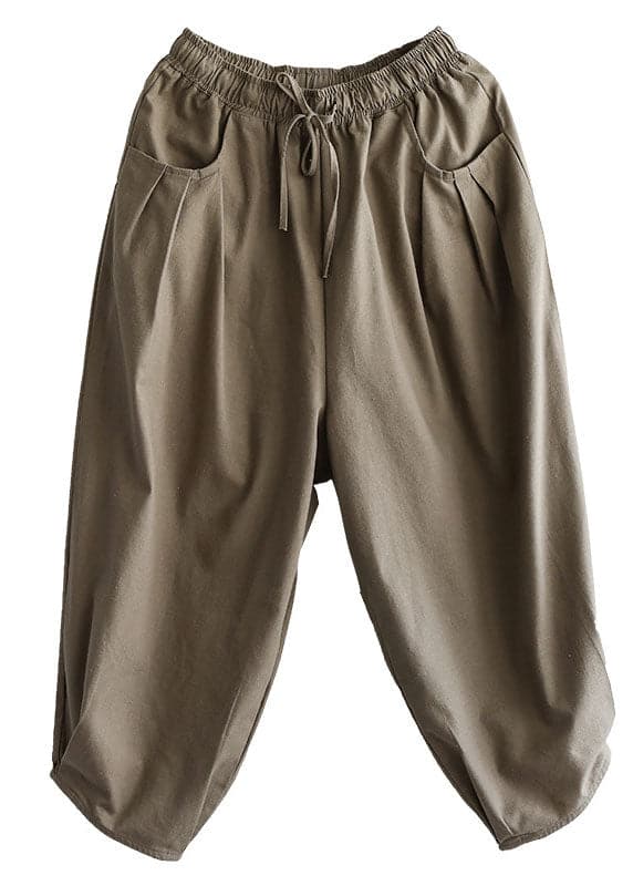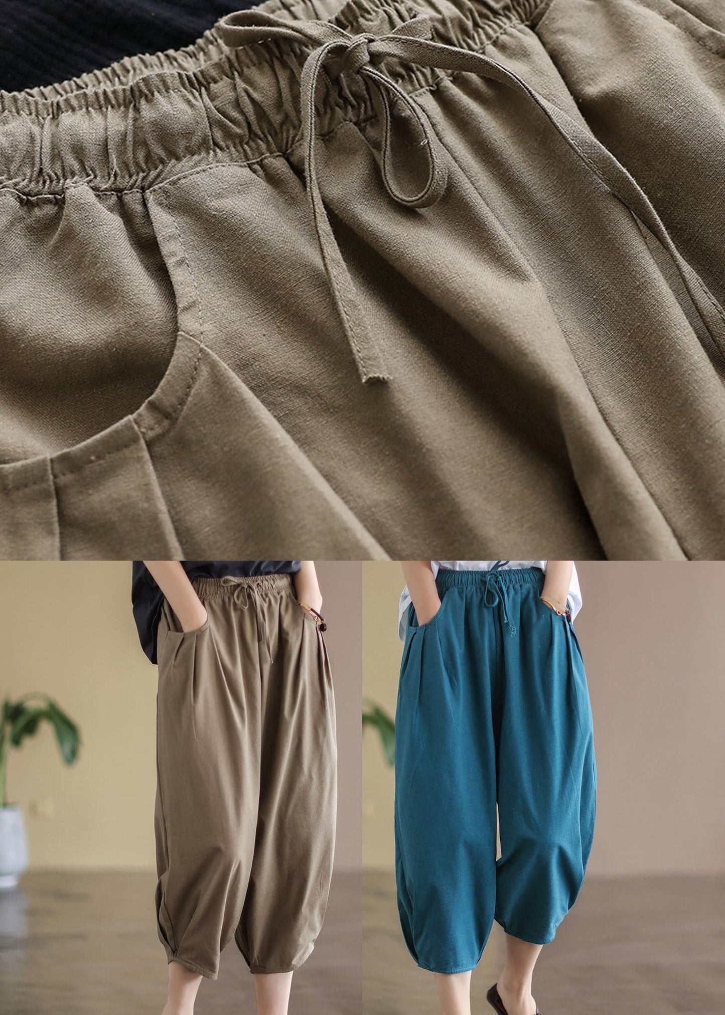 Coffee Loose Linen Harem Pants Elastic Waist Drawstring Summer