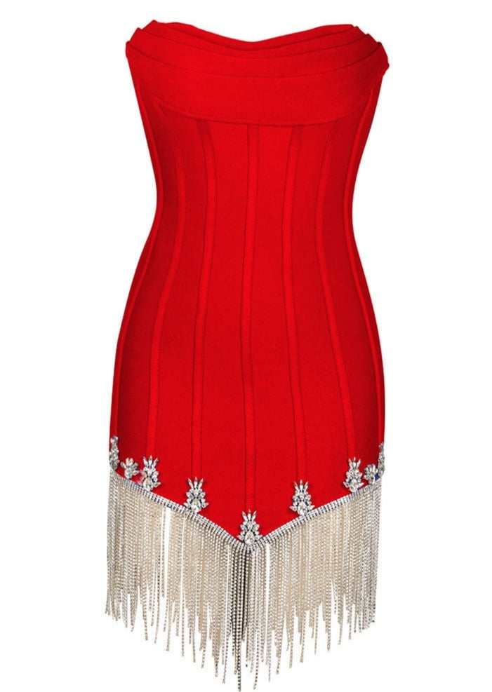 Corset Mini Red Dress with Rhinestone Threads