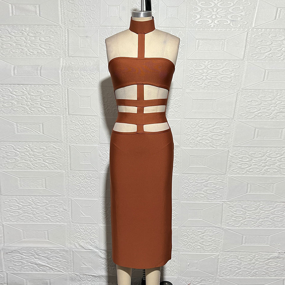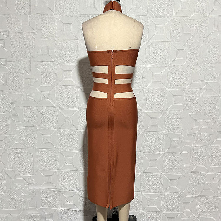 Looking for a dress that is both stylish and sexy? Look no further than our Cut Out Bandage Midi Dress. Crafted from high-quality bandage fabric, this dress is designed to hug your curves in all the right places and make you feel confident and beautiful.