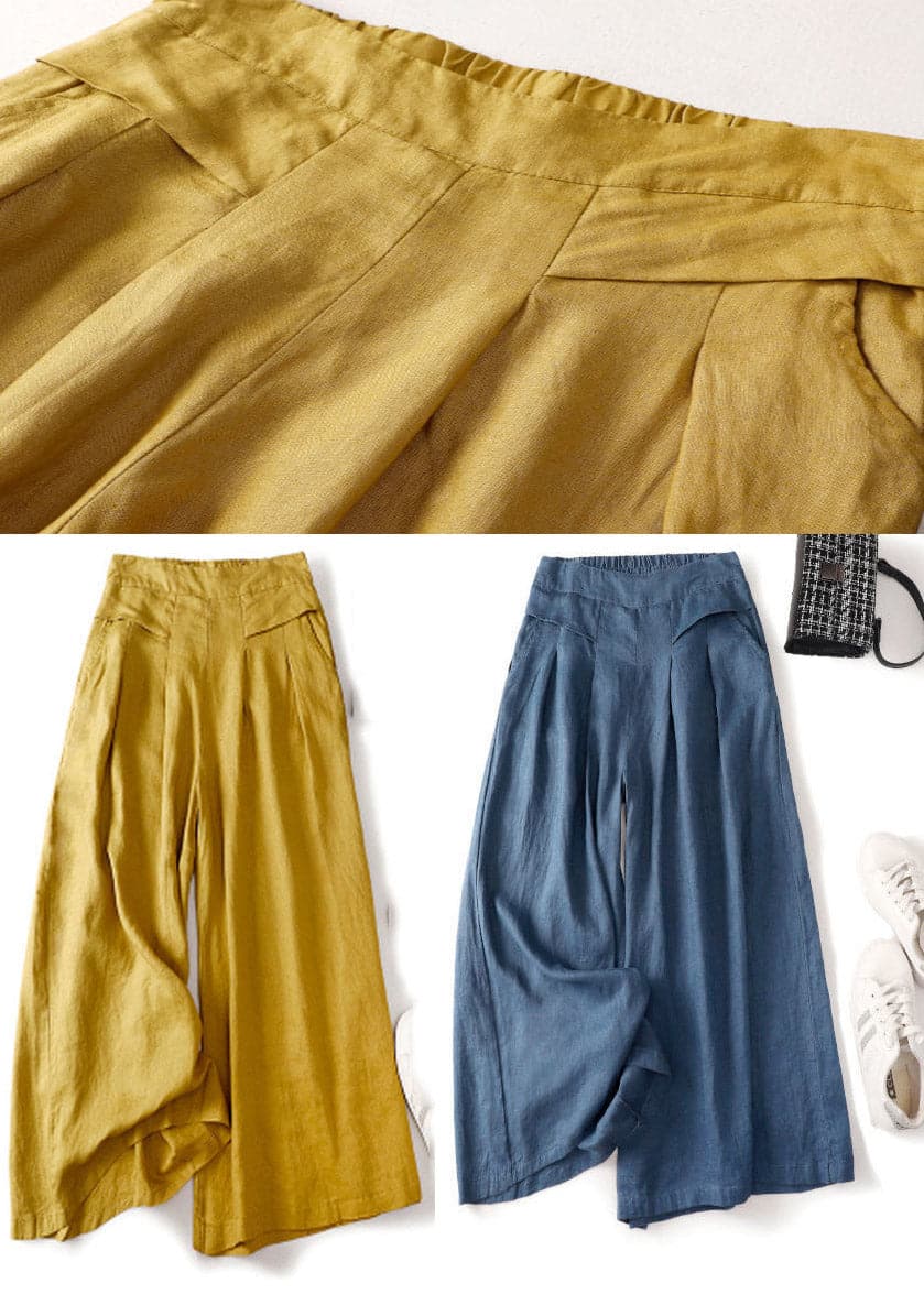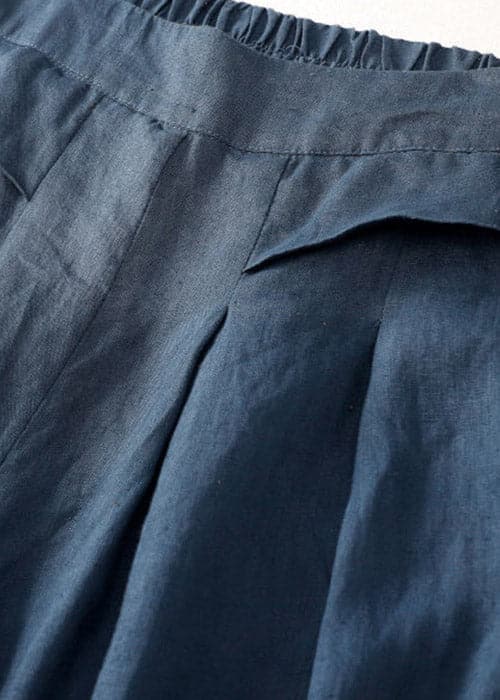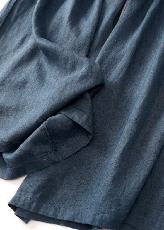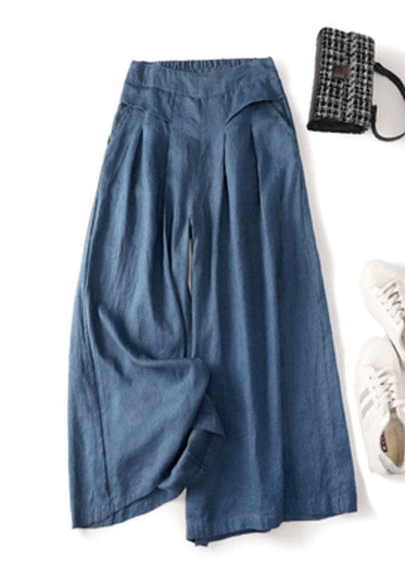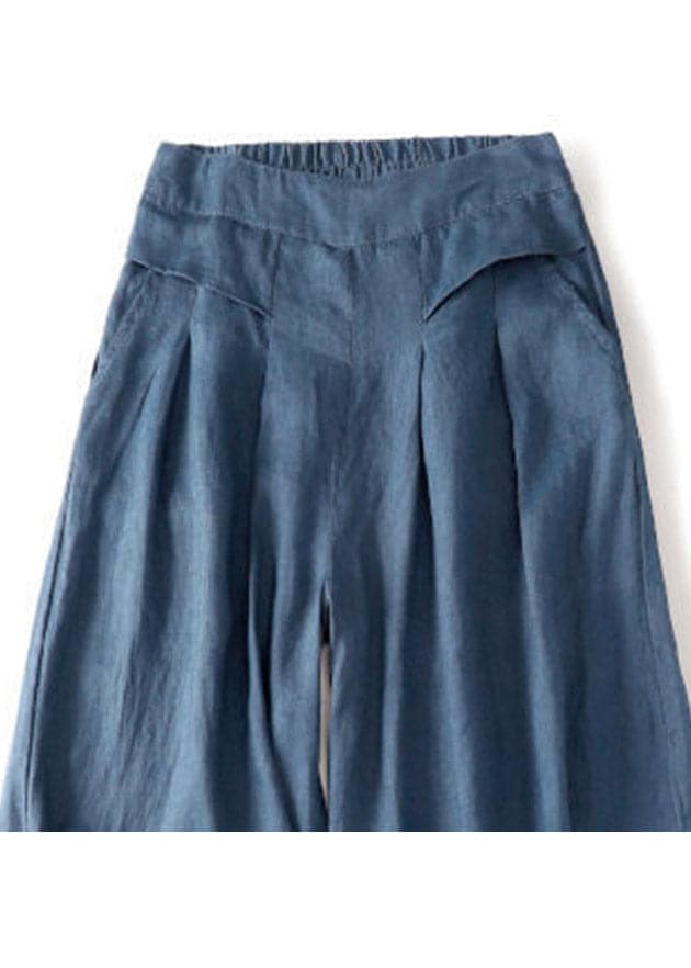 Denim Blue Linen Wide Leg Pants Pockets High Waist Summer