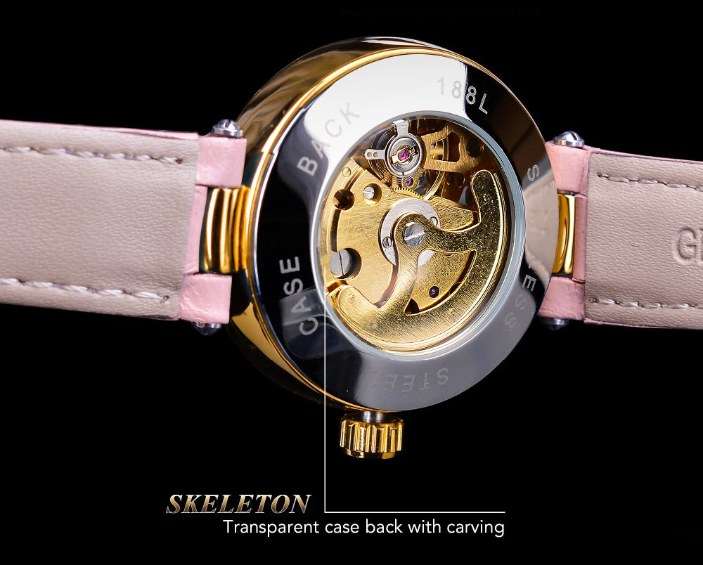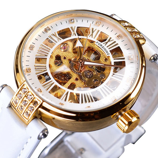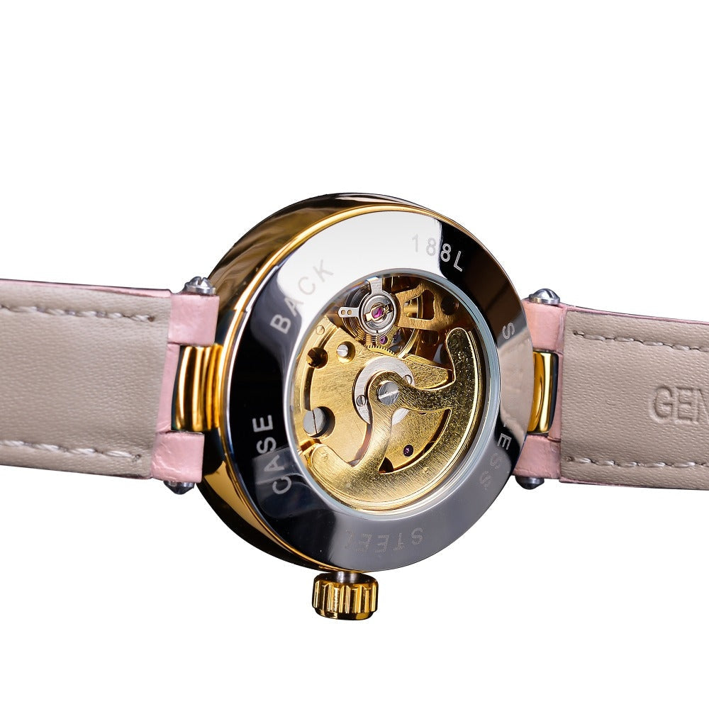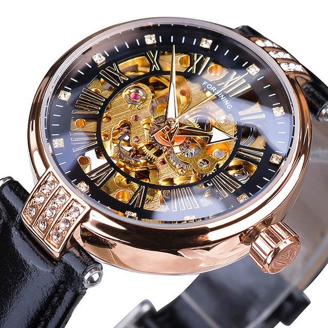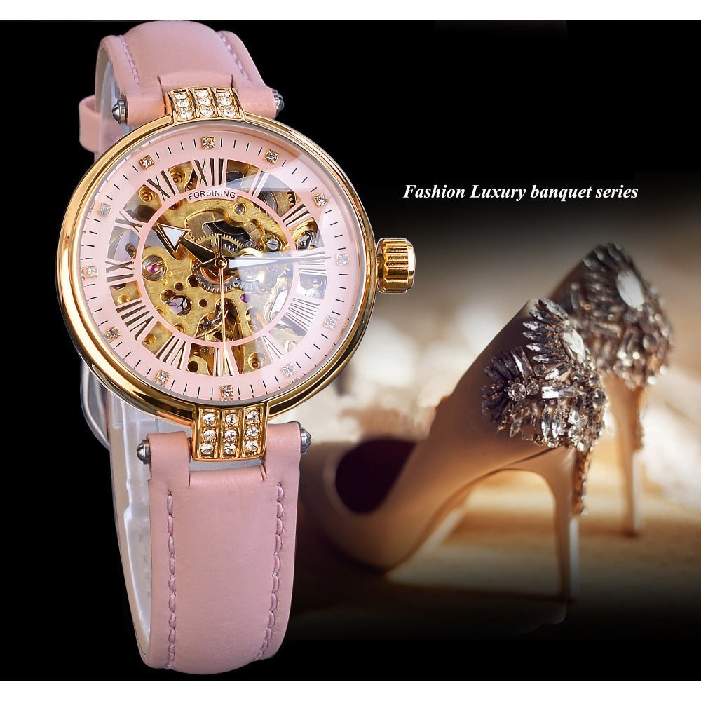 Diamond Embellished Automatic Self-Wind Skeleton Watch for Women