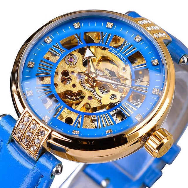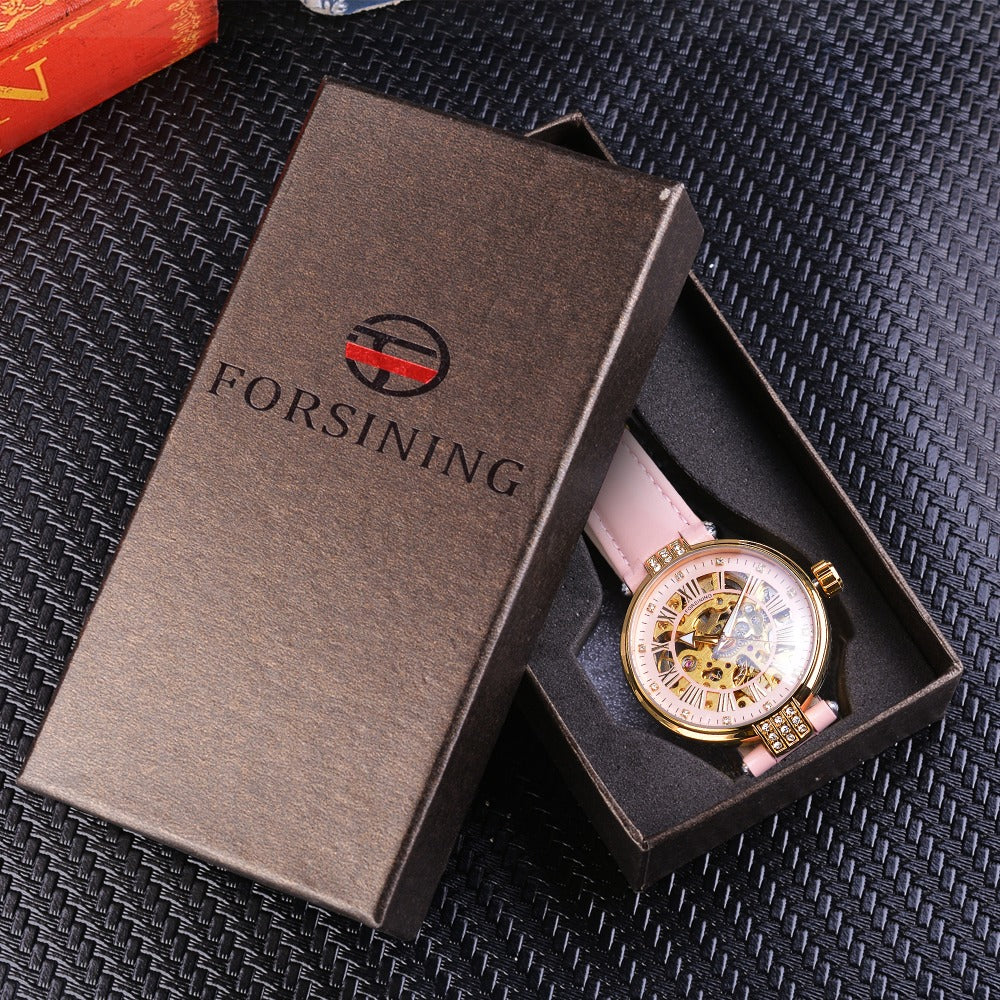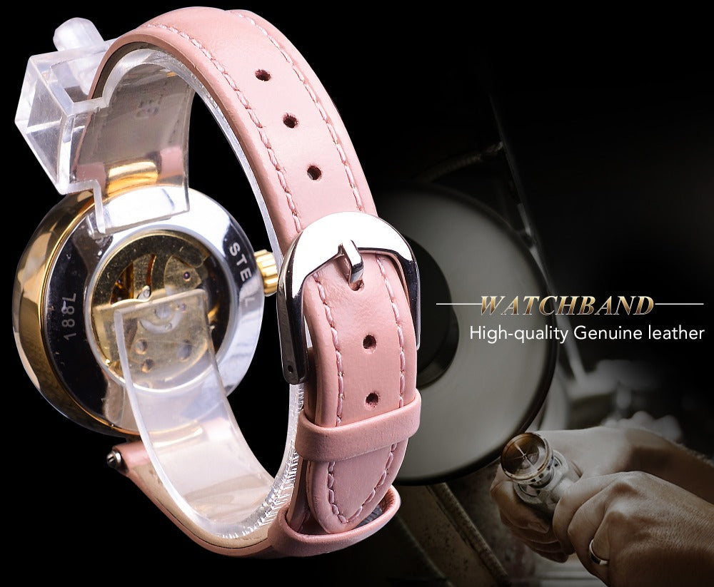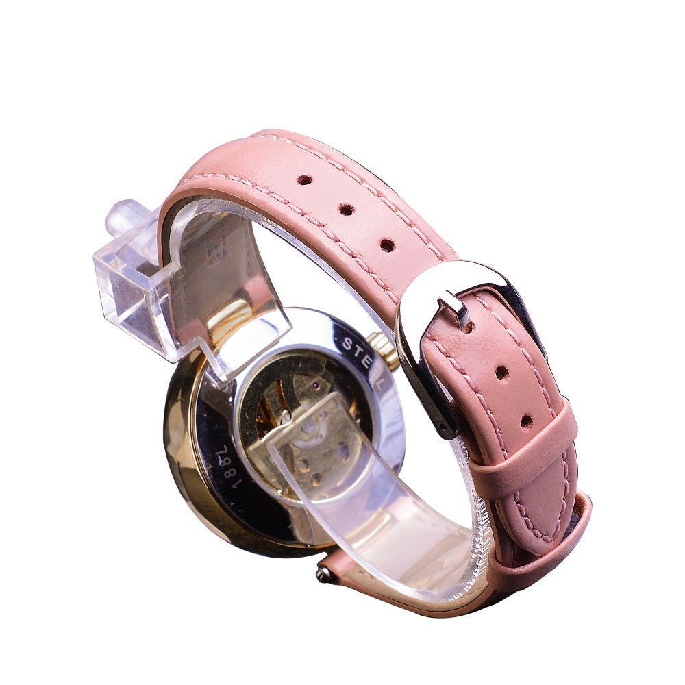 Diamond Embellished Automatic Self-Wind Skeleton Watch for Women