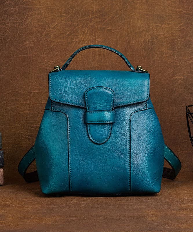 DIY Blue Oriental Paintings Calf Leather Backpack Bag