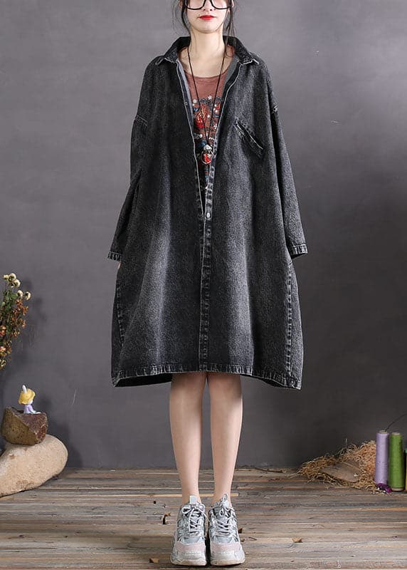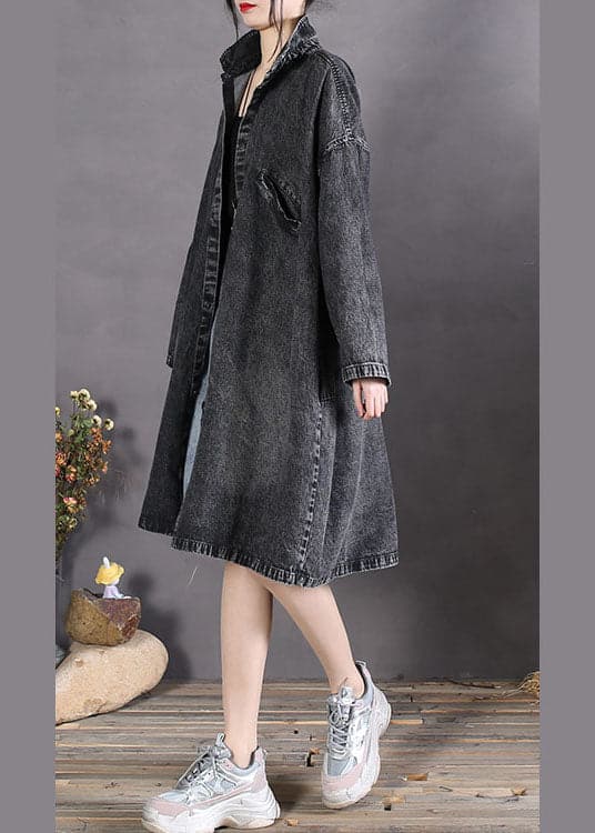 DIY Charcoal grey Peter Pan Collar Button denim Coats Spring