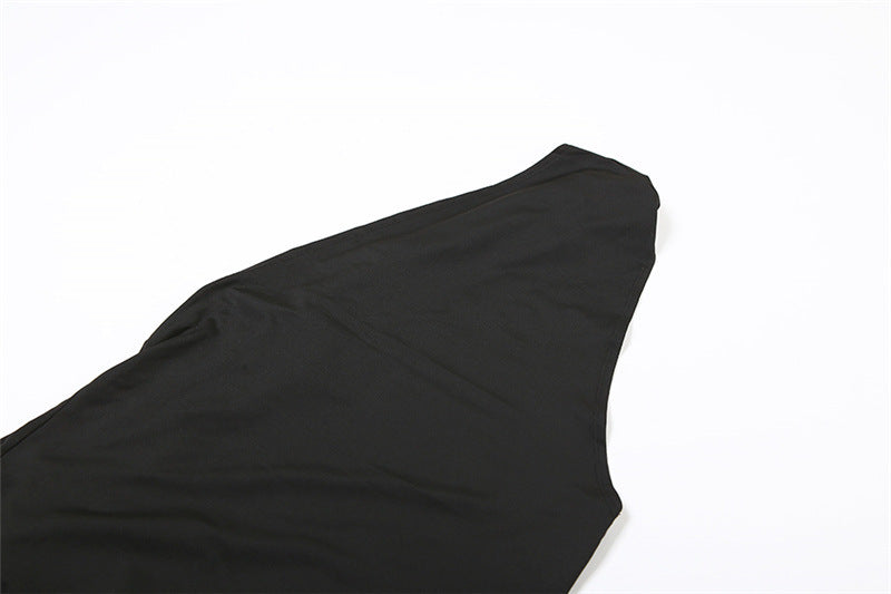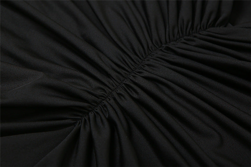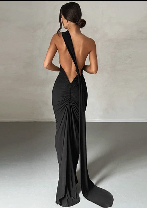 Draped Black Maxi Dress with Asymmetrical Neckline