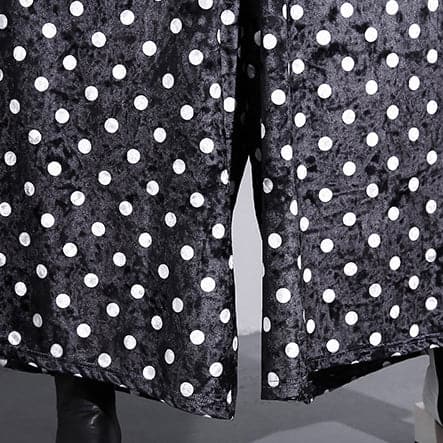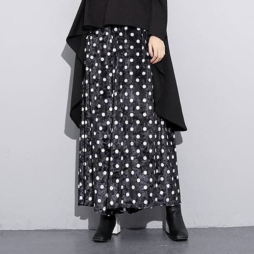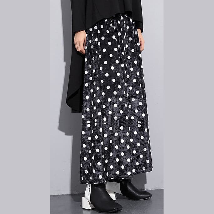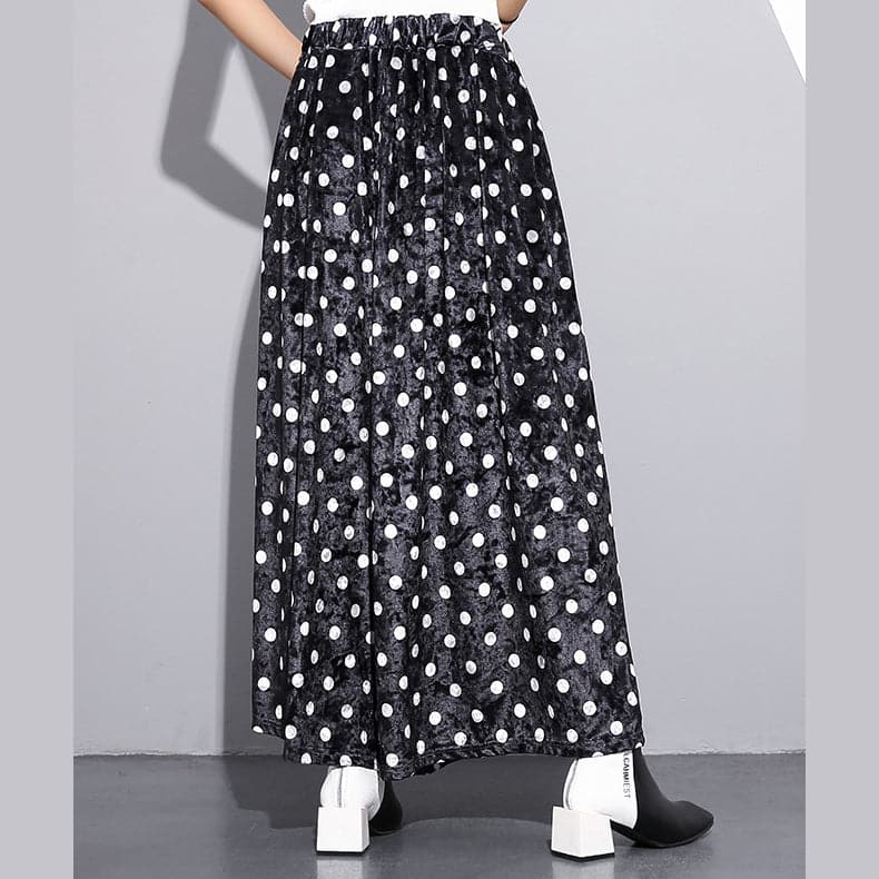 Elegant black dotted plus size clothing elastic waist traveling women wide leg pants cotton trousers