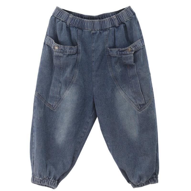 Elegant dark denim blue trousers summer pockets Cotton shorts