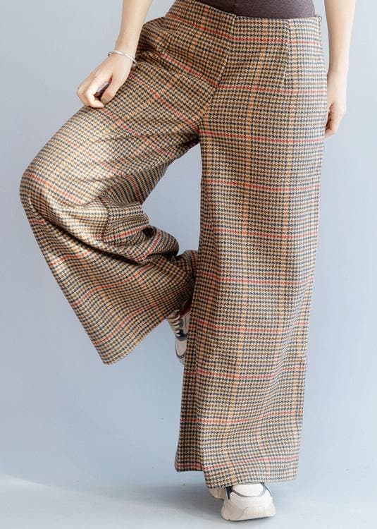 Elegant elastic waist women trousers fall fashion khaki orange plaidFashion Ideas wide leg trousers