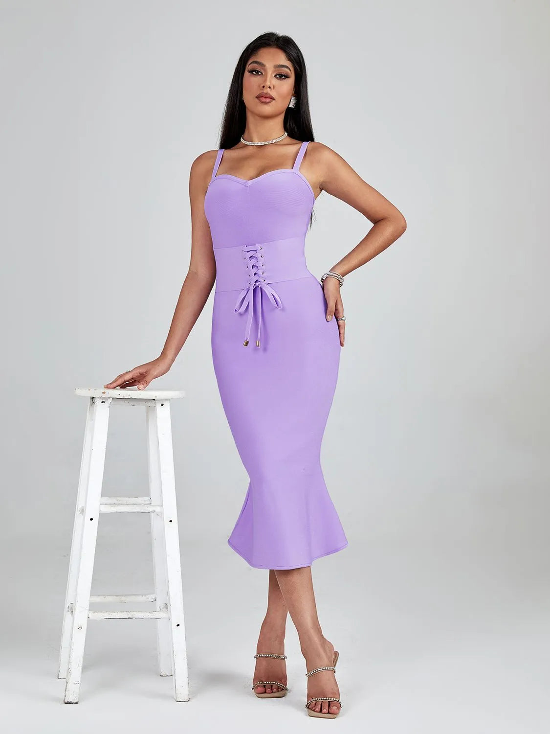Make a lasting impression in our Elegant Mermaid Evening Midi Dress in Lavender. Elevate your style and confidence with this exquisite piece, designed to make you feel like a true star wherever you go. It's time to embrace elegance, allure, and sustainability all in one stunning dress.