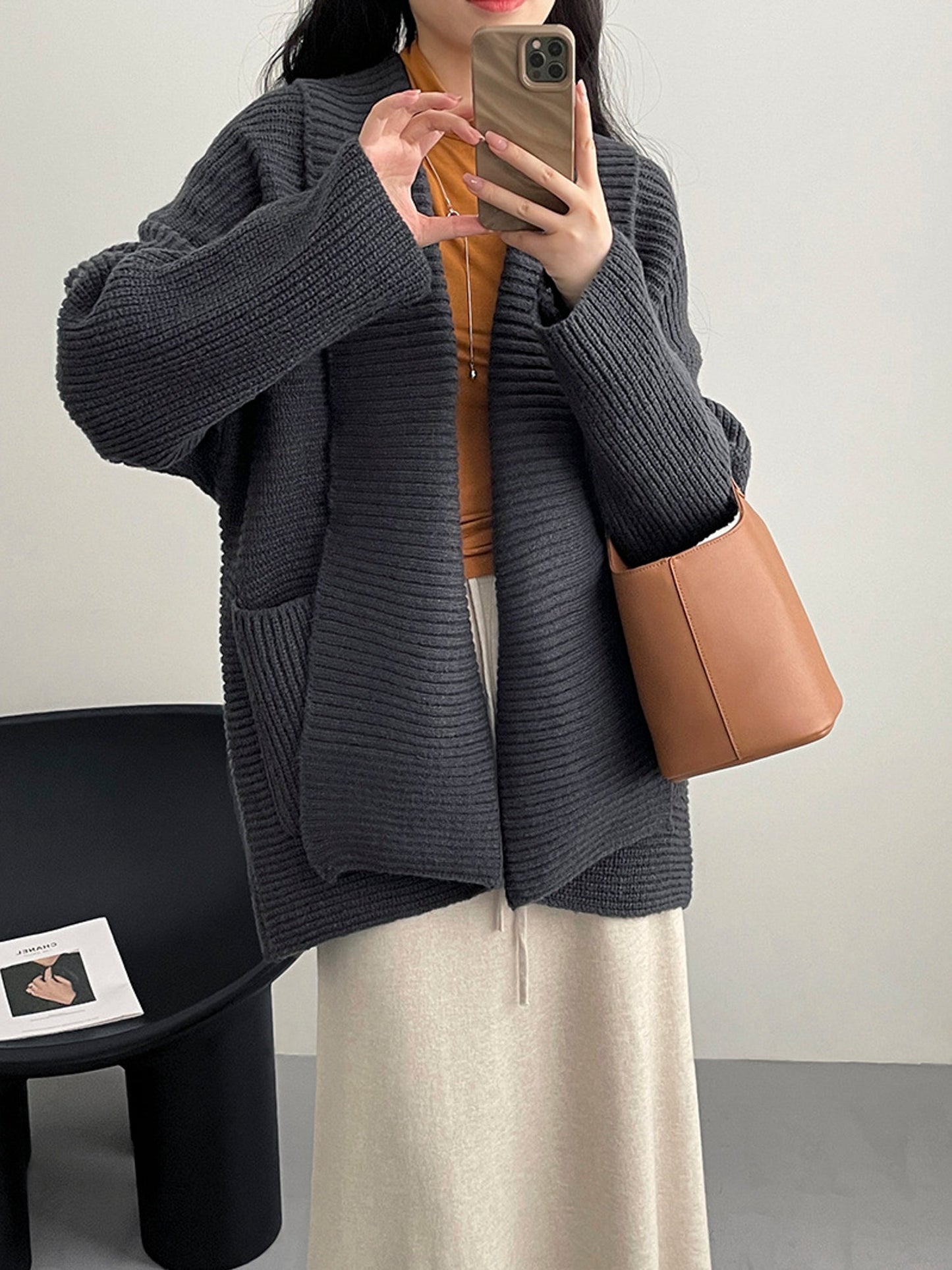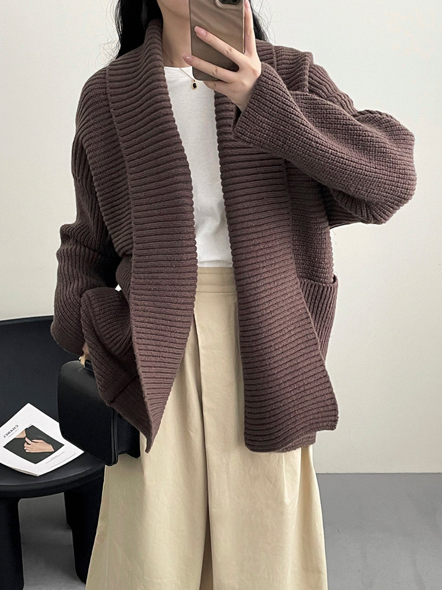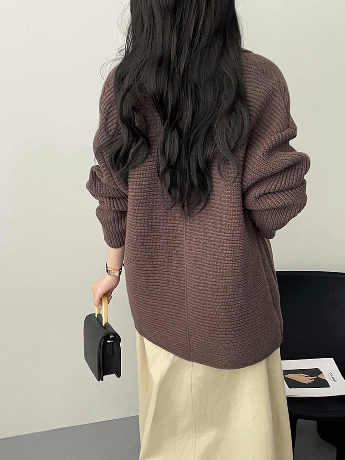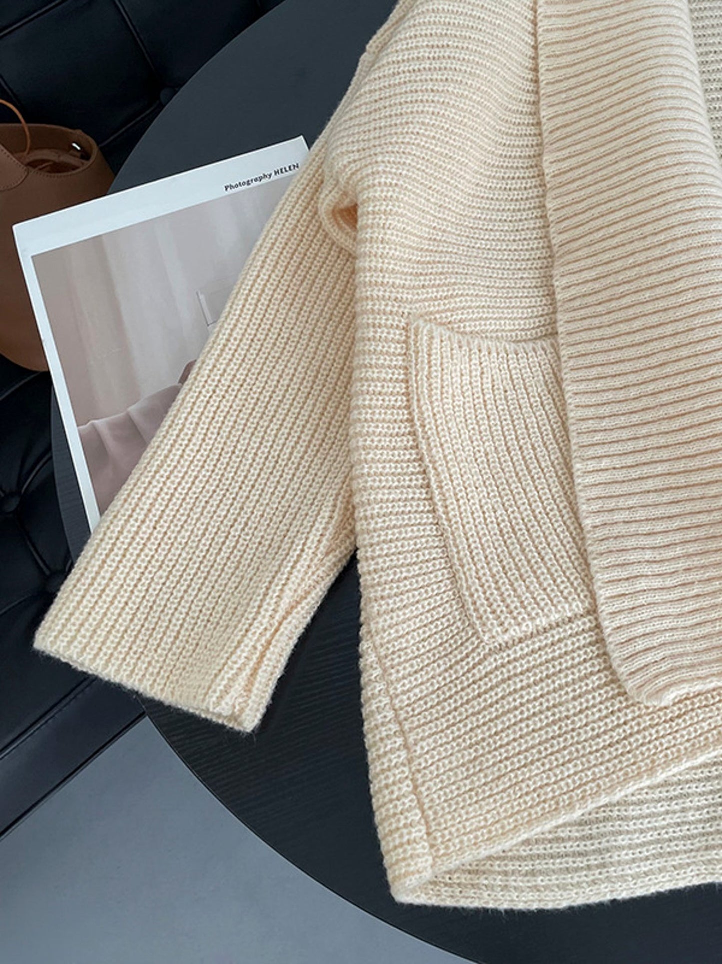 Elegant Retro Oversized Collar Sweater for Women: Loose-Fit, Slimming, and Stylish Knit Outerwear
