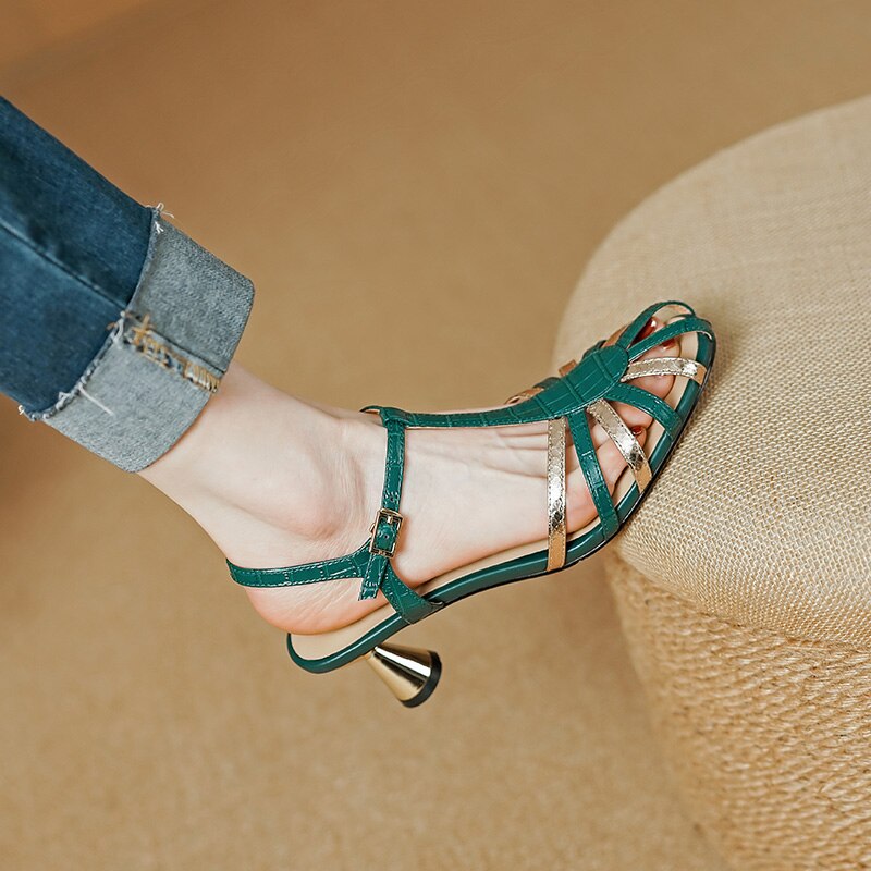 Elegant Thin High Heels Women Sandals Fashion Narrow Band Ankle Strap Mature Office