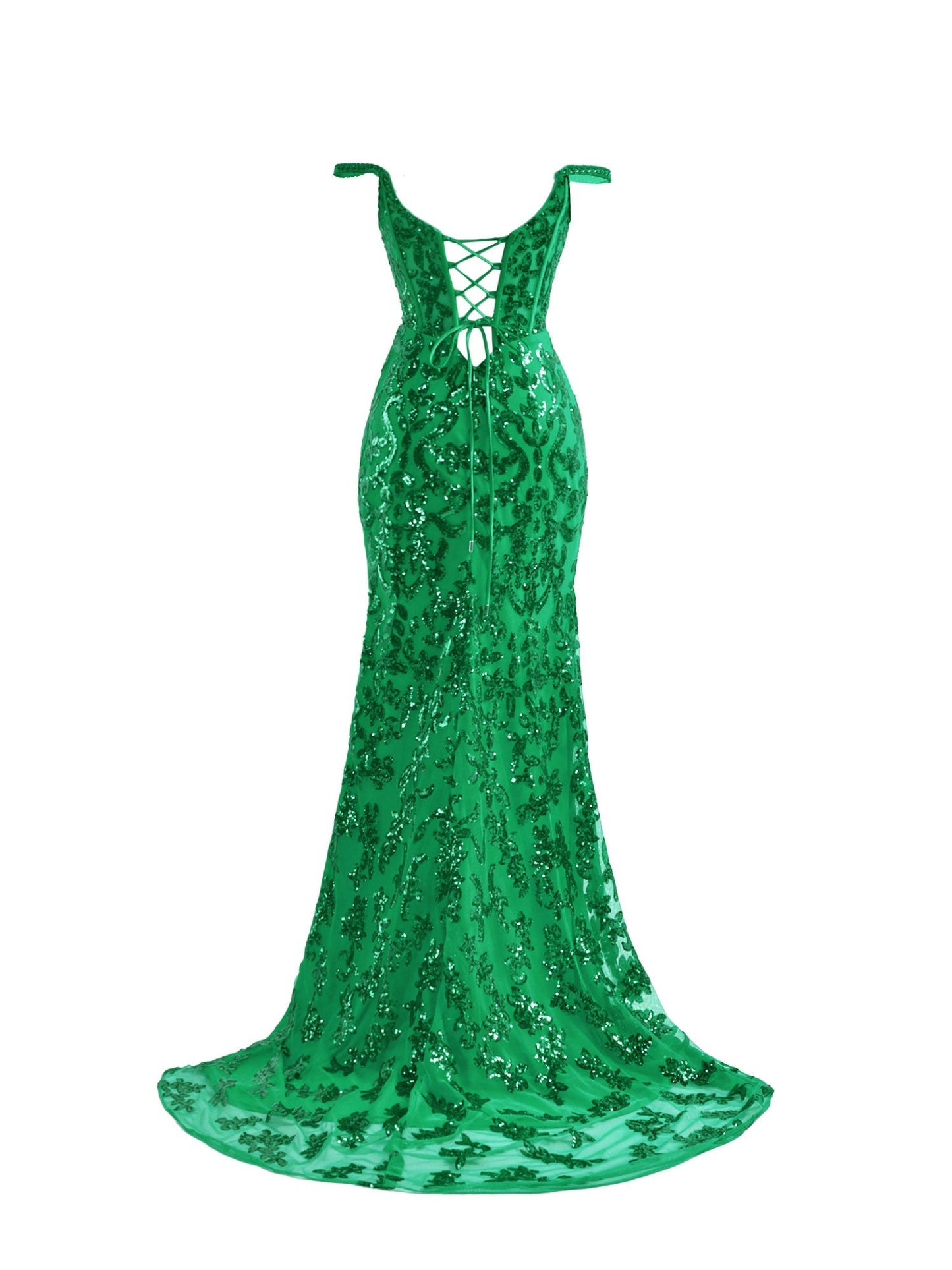 Erryn | Green Sheath Sequins Long Prom Dress with Slit