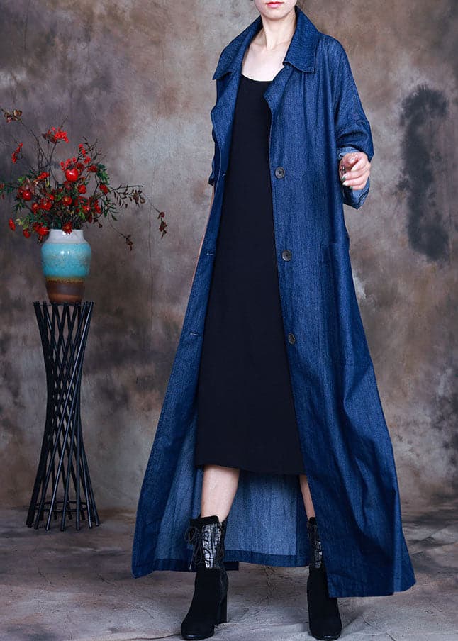 Fashion Blue button tie waist Peter Pan Collar Cotton denim trench coats Spring