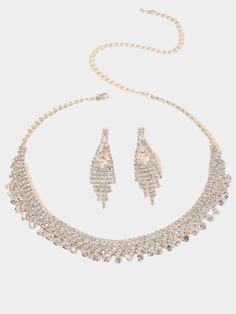 Fashion Rhinestone Necklace Earrings Set MSE033126