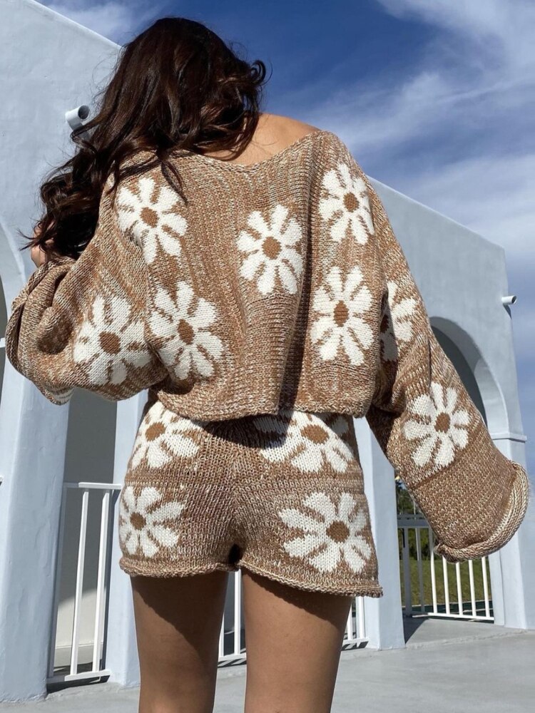 Fashion Sweater Set for Autumn Winter Women's Casual Knitted Pullover Shorts Two-piece Set 2 Piece Sets Womens Outfits Sweaters