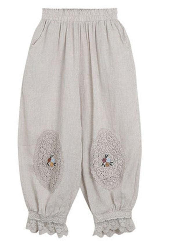 Fine Nude Patchwork Hollow Out Harem Pants Trousers Linen