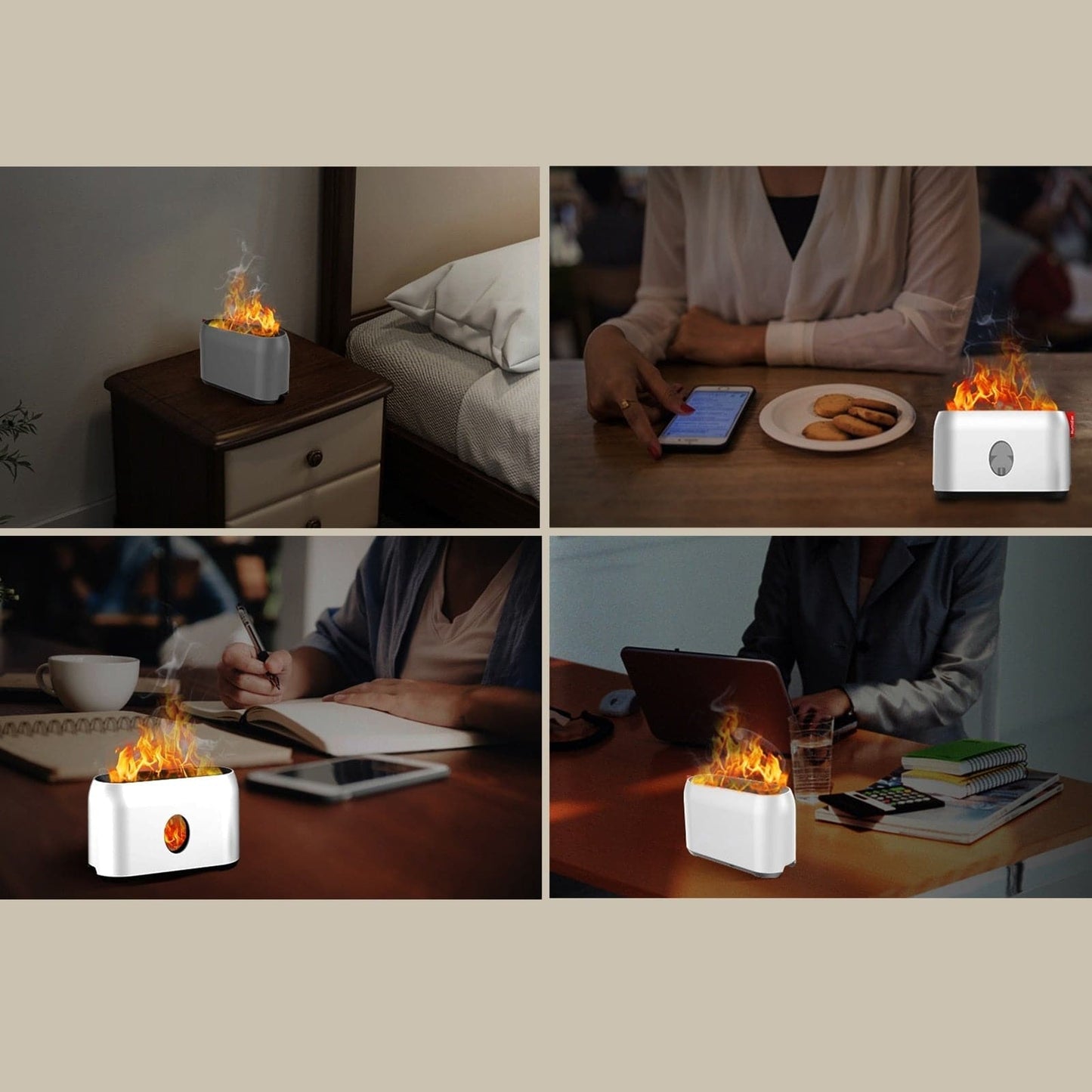 🔥 HUMIDIFIER & ESSENTIAL OIL DIFFUSER 2 in 1: This Remarkable Flame Humidifier is very suitable for use in the bedroom. You can add 3-5 drops of your favorite essential oils during use to relieve fatigue, moisturize your skin, reduce stress, and create a perfect sleep environment for you!