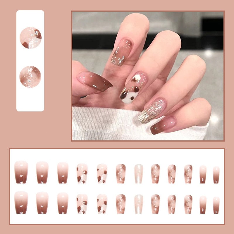 - Peel and Stick: Gently peel off the backing of the adhesive sticker, align the nail with your cuticle, and firmly press it onto your natural nail. Hold for a few seconds to secure the bond.