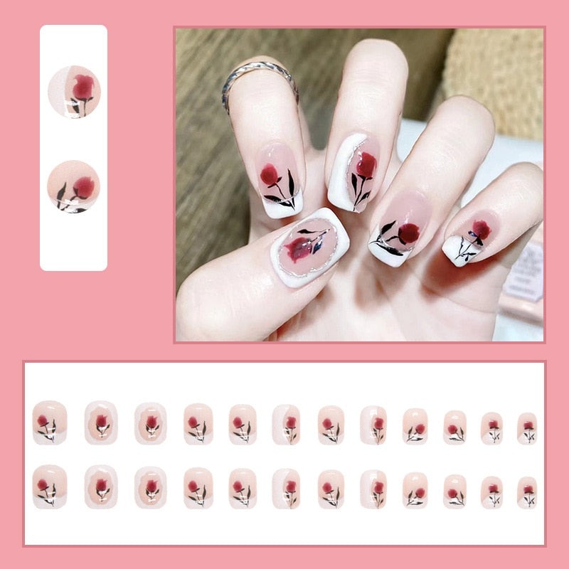 These Floral Press On Nails are designed to last up to two weeks and feature a delicate floral design for an added touch of elegance. The strong adhesive is designed to ensure a secure fit and easy removal.