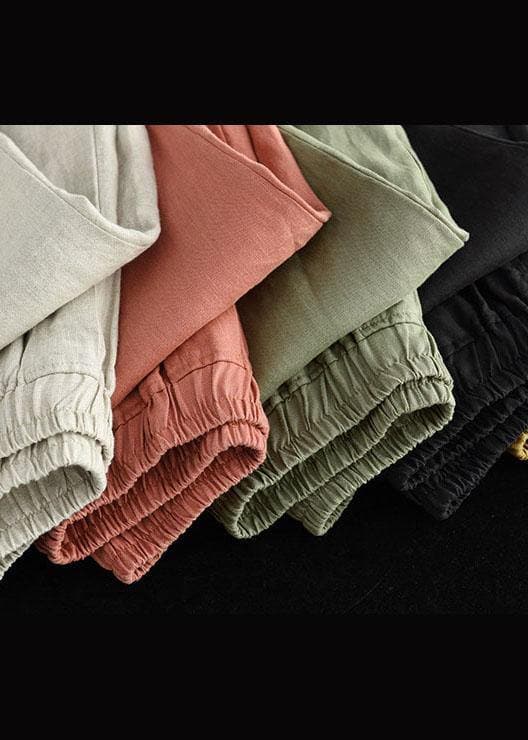 French Pink Casual Loose Patchwork Summer Linen Pants