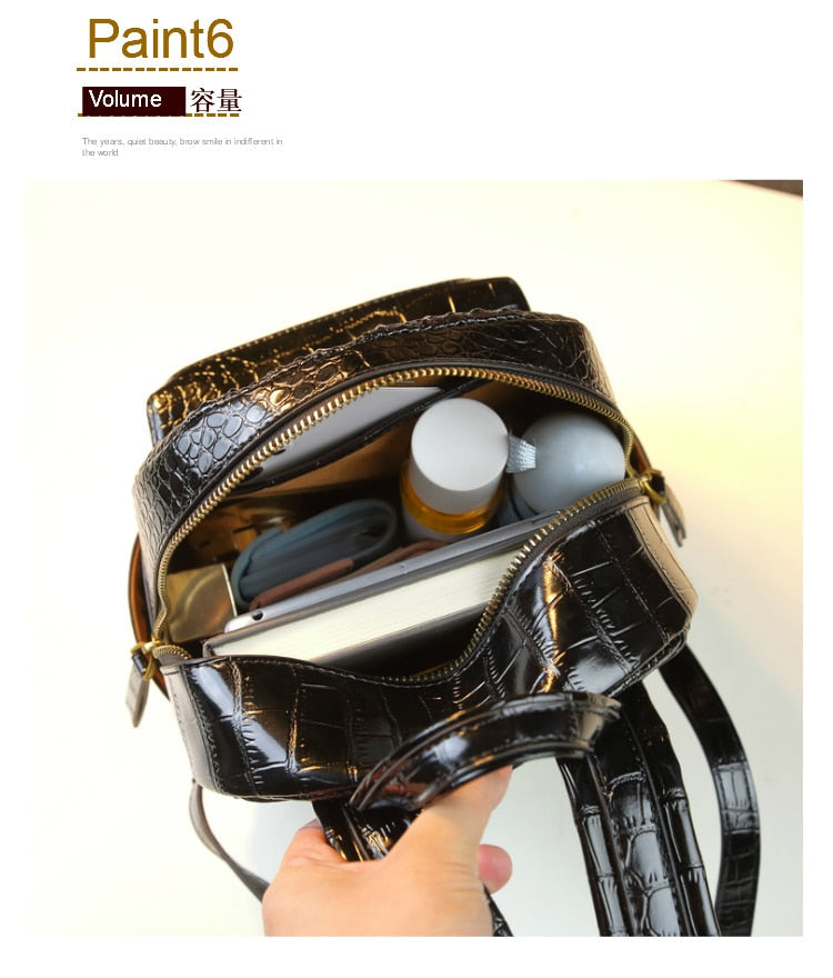 Genuine Leather Crocodile Pattern Women Luxury Casual Small Shoulder Portable Bag Travel Backpacks