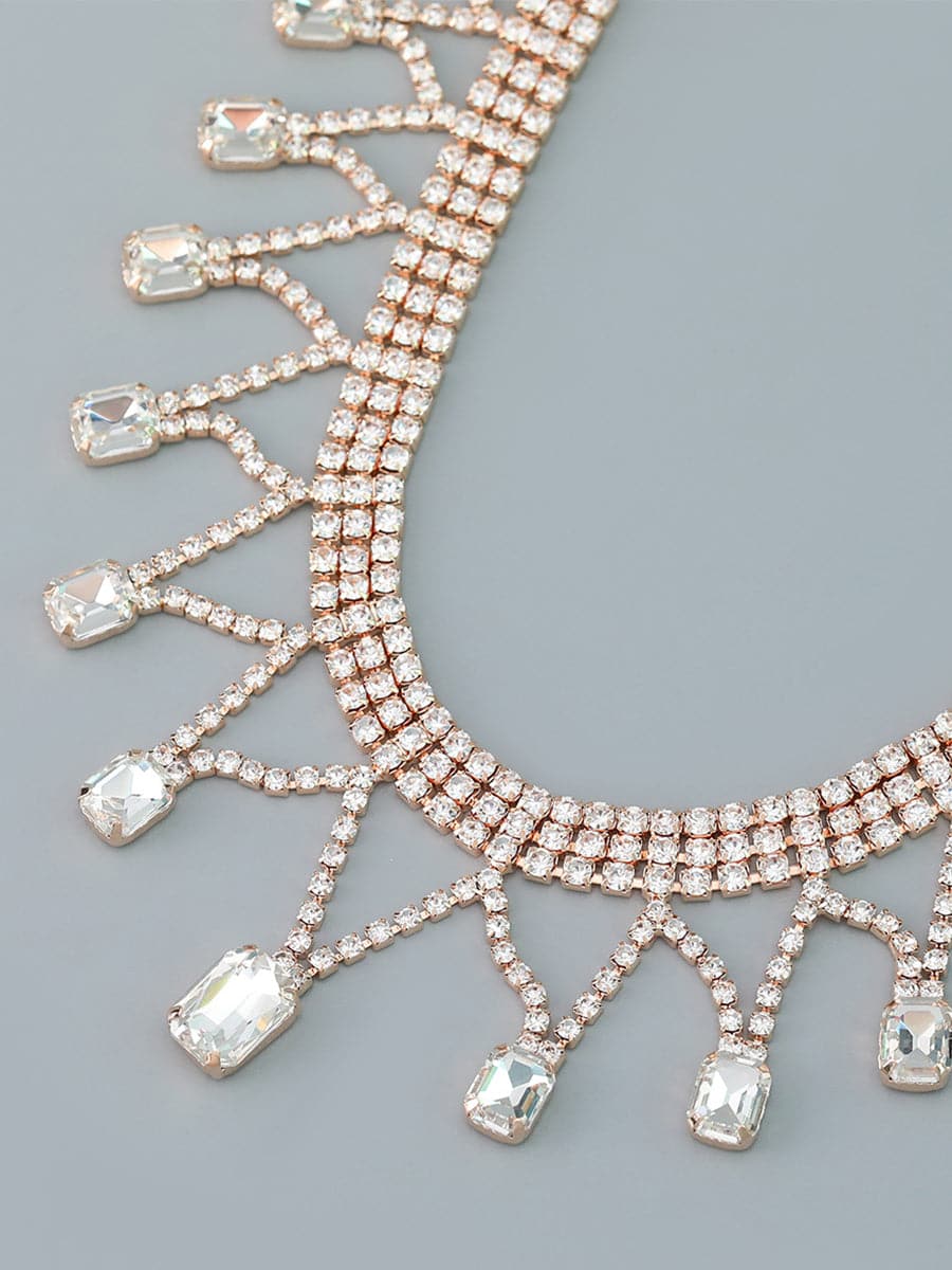 Adorn yourself in elegance with this glamorous crystal rhinestone necklace. Expertly crafted from high-quality materials for brilliance and sparkle, this exquisite necklace will instantly enhance any look.