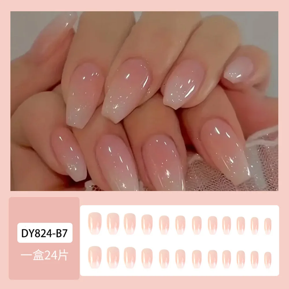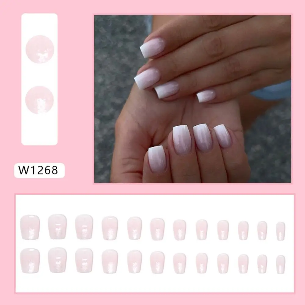 Gradient False nails French Ballerina Fake Nails Stars Blue White Wavy Flowers Nails Full Cover Press on Nails DIY Detachable