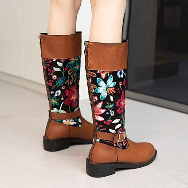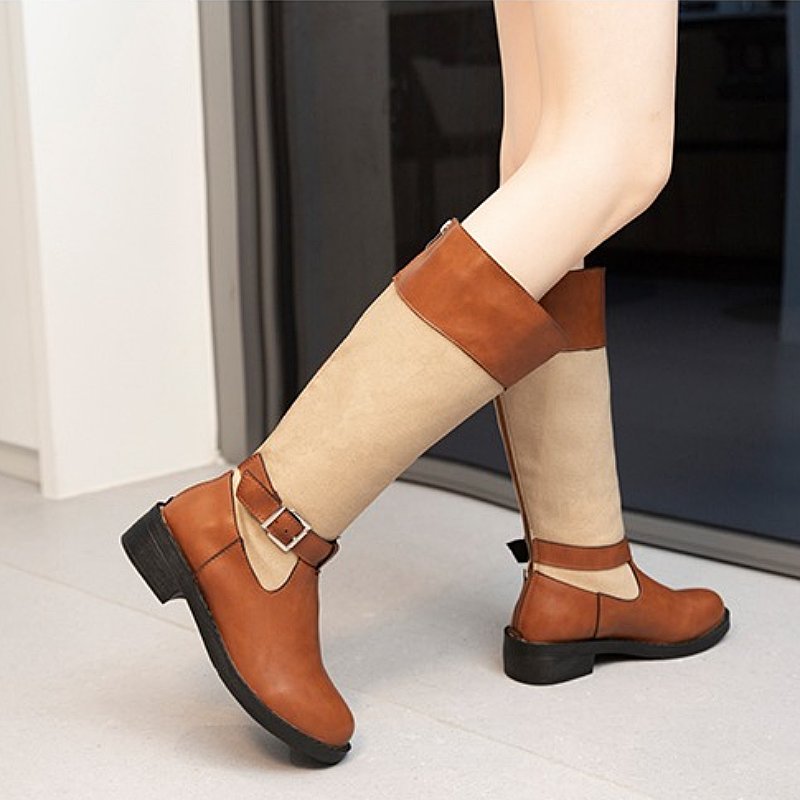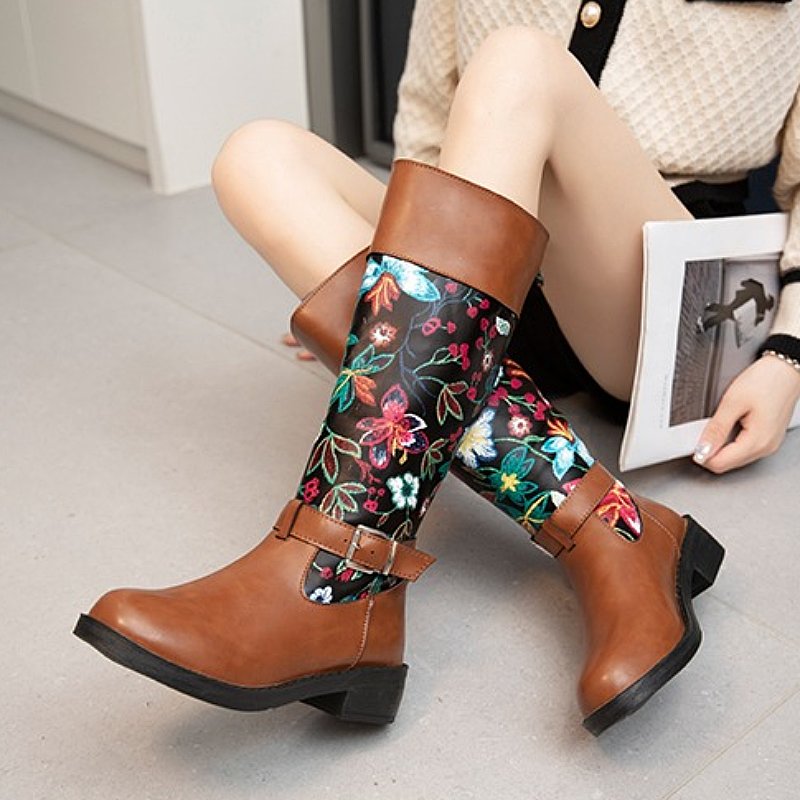 Dyavor Women Leather Winter Boots Retro Mid-calf Orthopedic Shoes