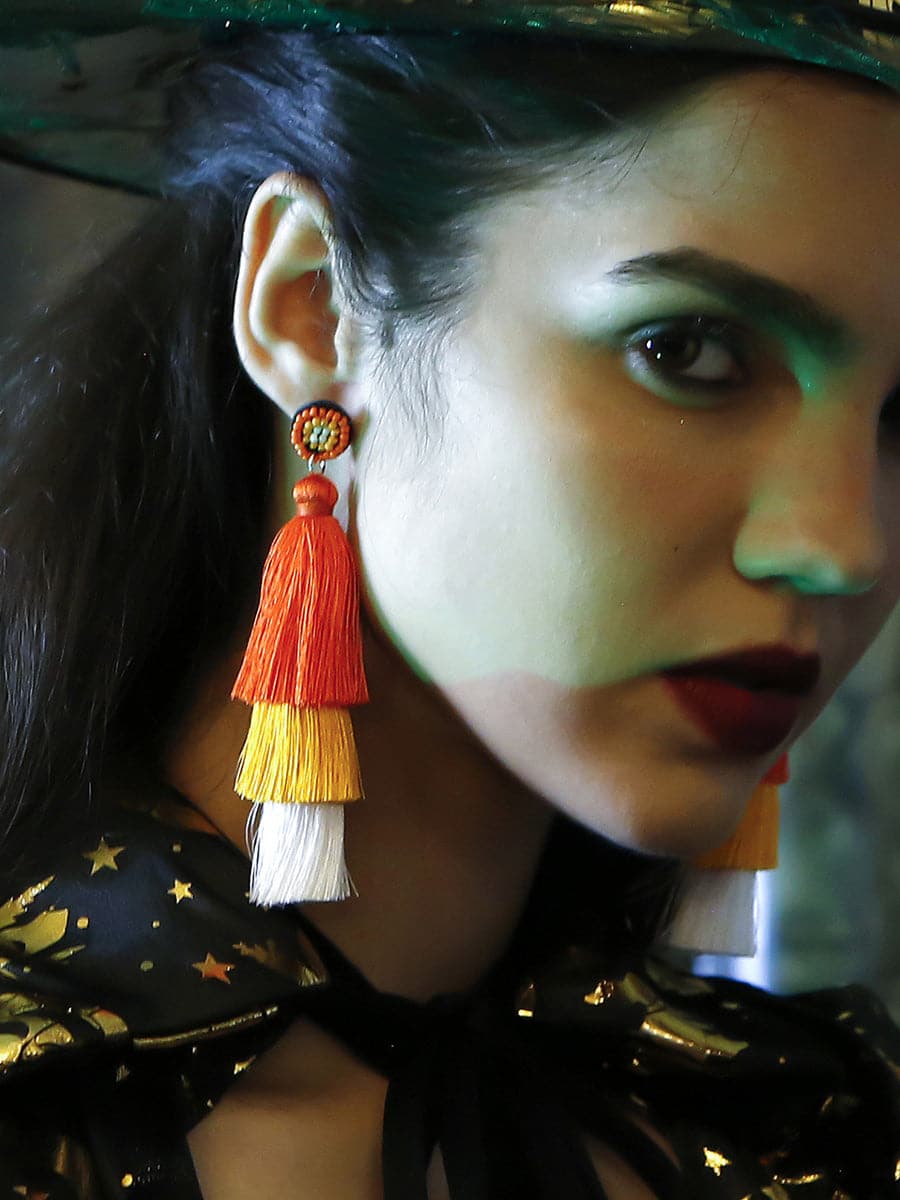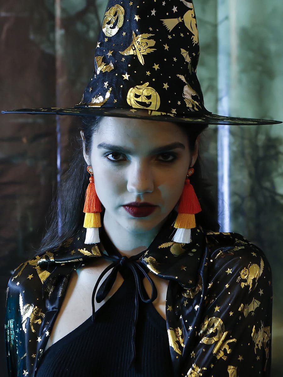 This pair of Halloween Boho Tassel Earrings will add a fun and spooky touch to your outfit for any occasion. The lightweight design is comfortable to wear and features a festive tassel design in a variety of colors. Add the perfect seasonal accessory with this eye-catching statement piece.