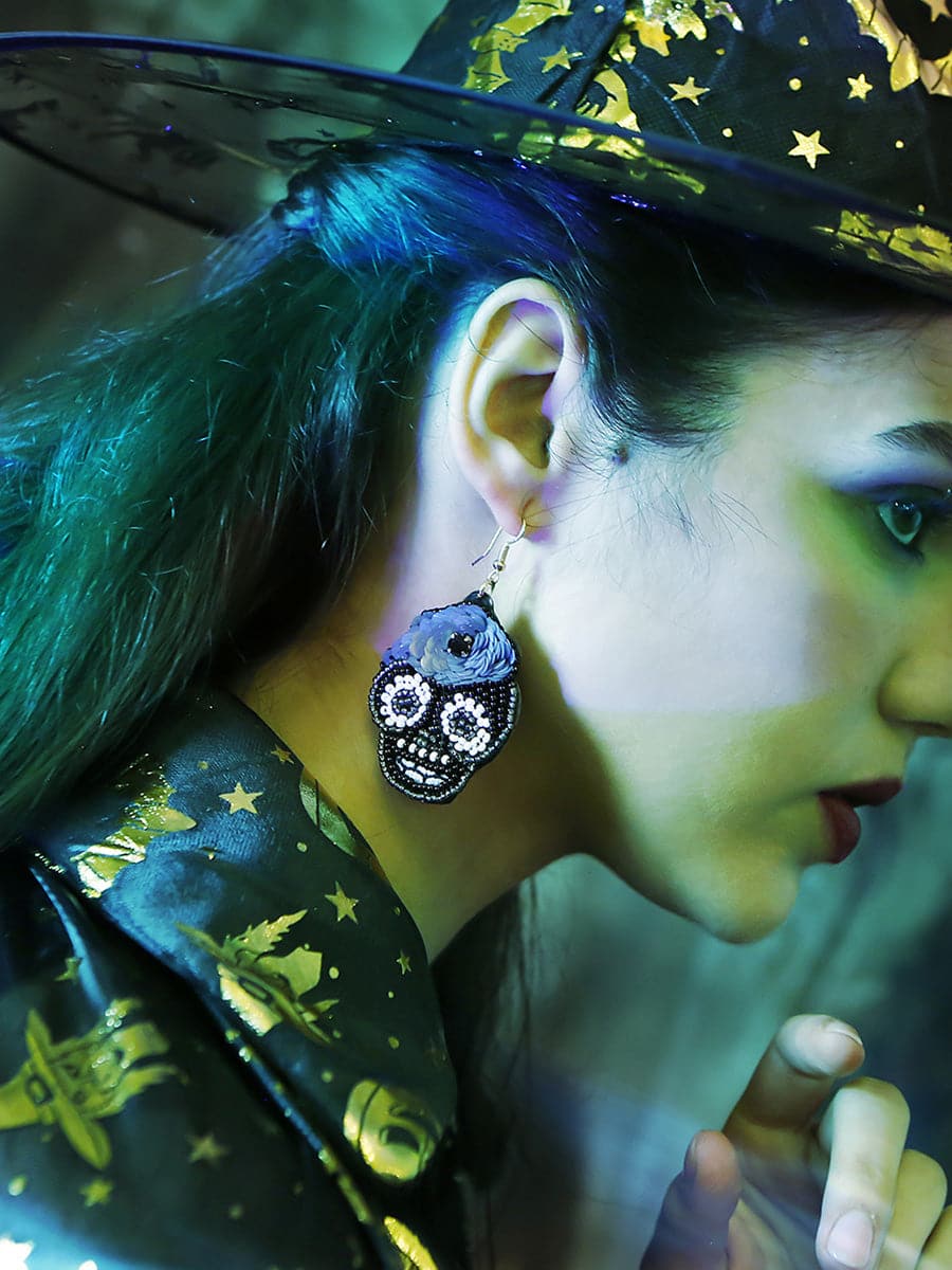 These handmade, beaded skull Halloween earrings radiate spooky vibes. Perfect for adding a unique element to your costume, these earrings are sure to bring a festive twist to your outfit. Crafted with attention to detail and quality materials, these earrings are a great way to show your unique style.