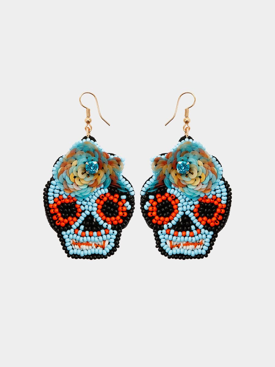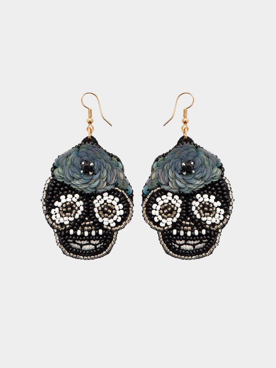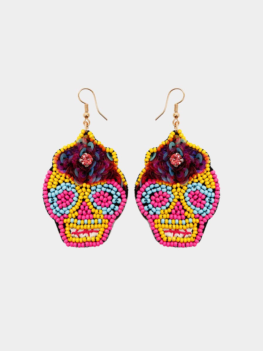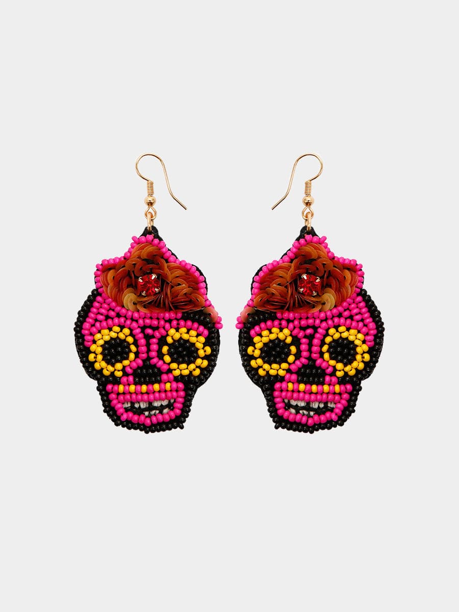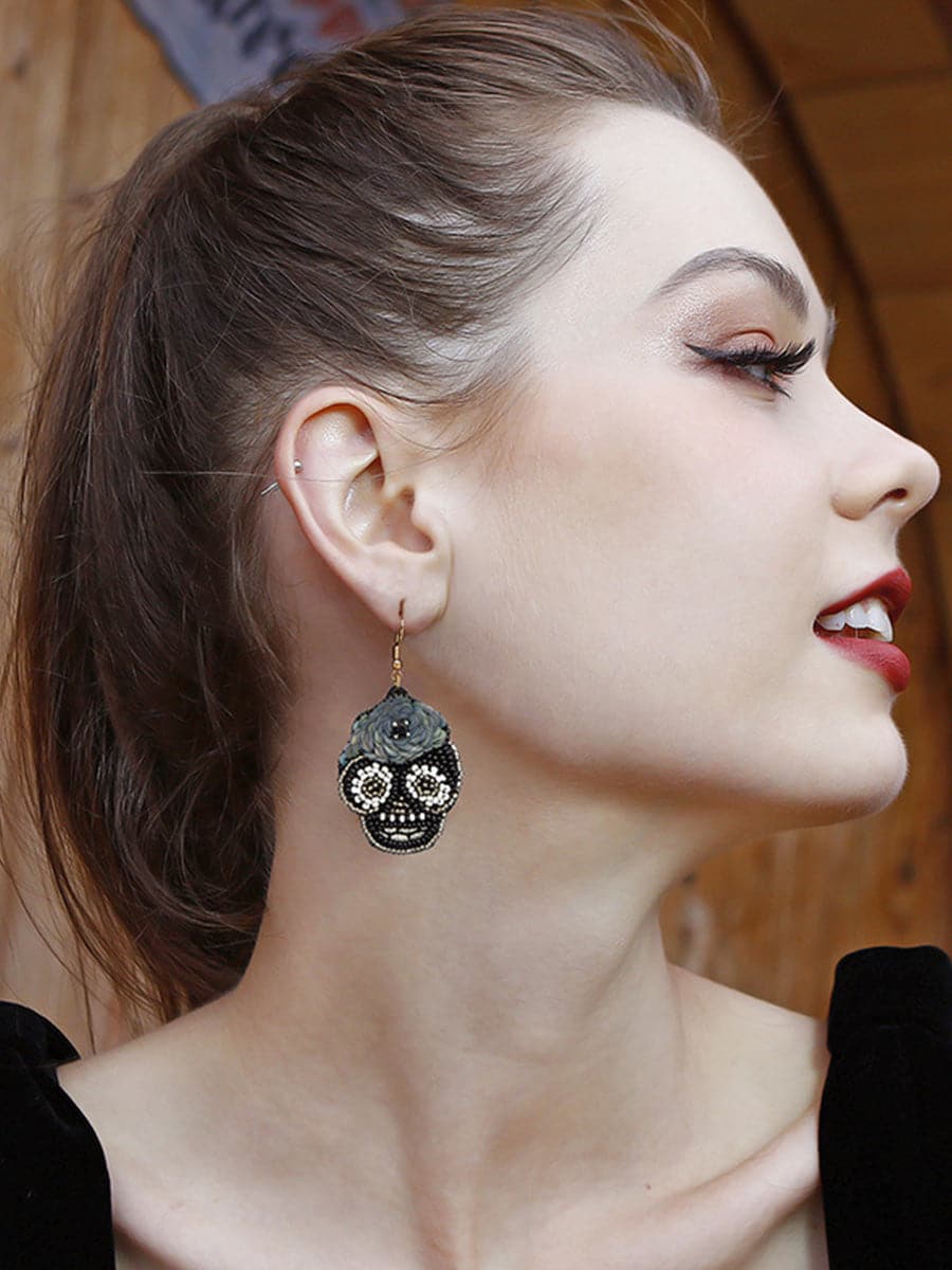 Handmade Beaded Skull Halloween Earrings MSE00154