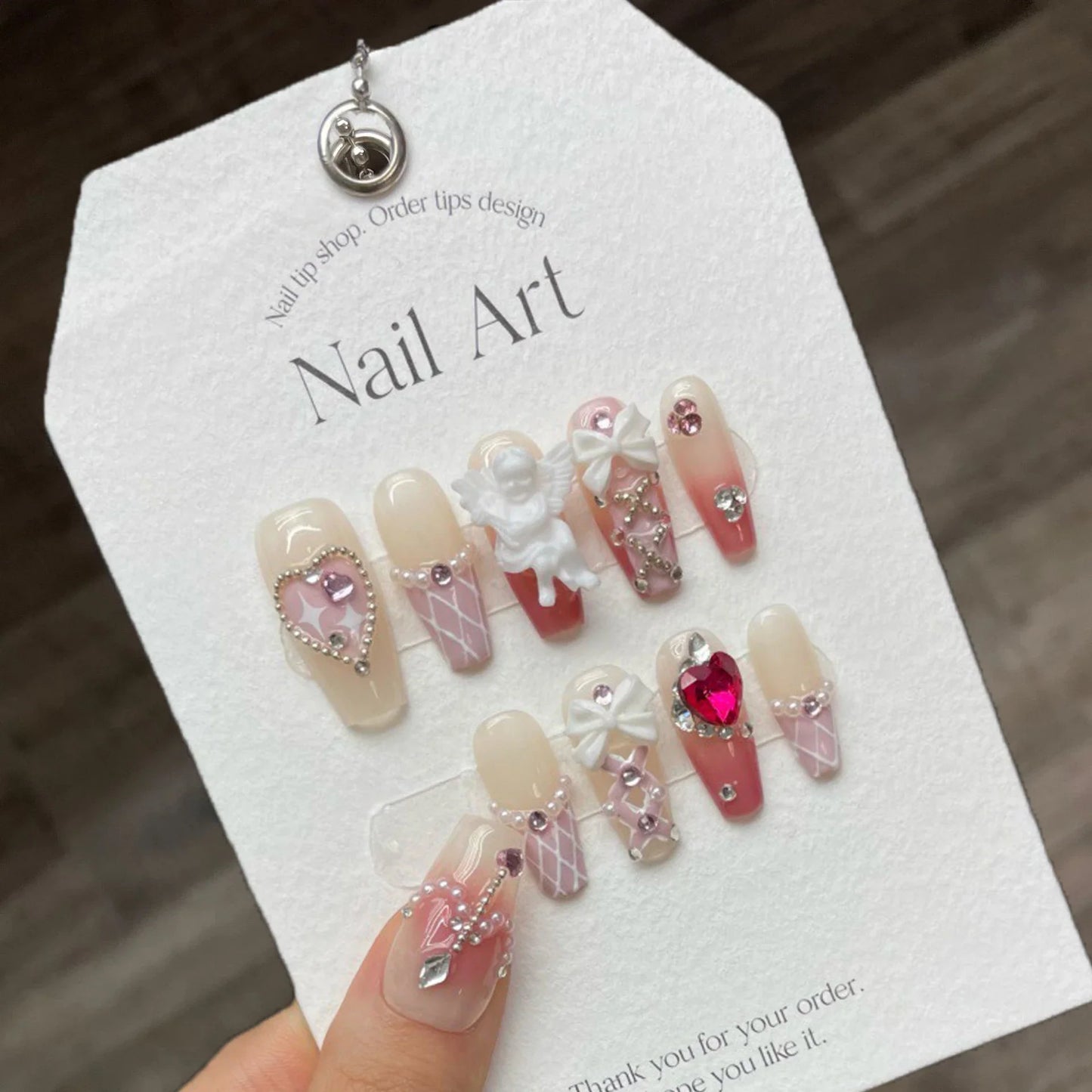 Handmade Purple Press on Nails with Glitter Design Reusable French Fake Nails with Glue Naitifical Fingernail Tips Nail Art Y2k