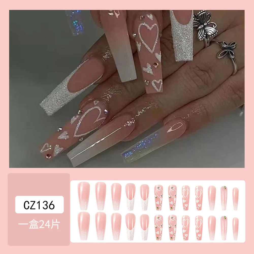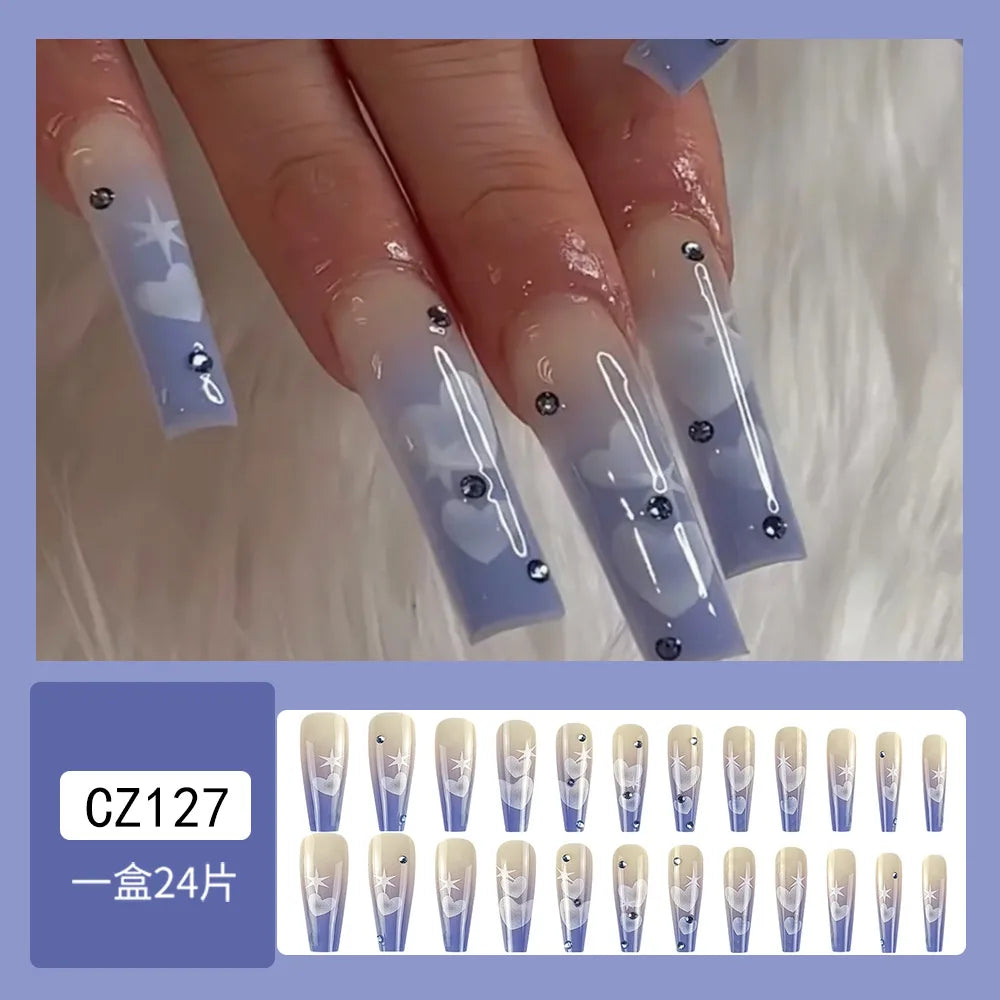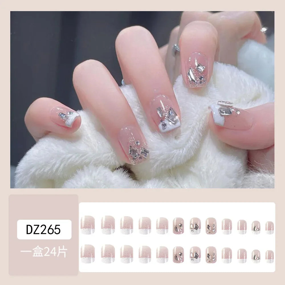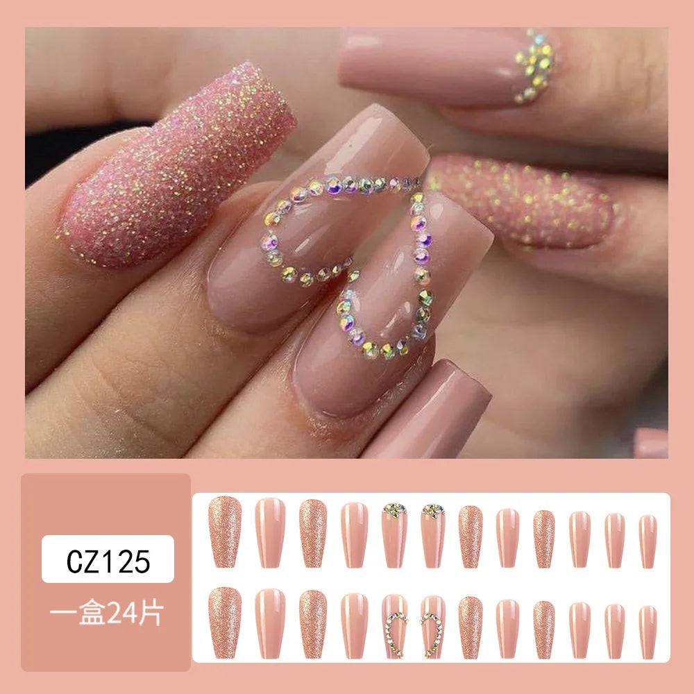 Handmade Soft Gel Diamond Fake Nails 24Pcs