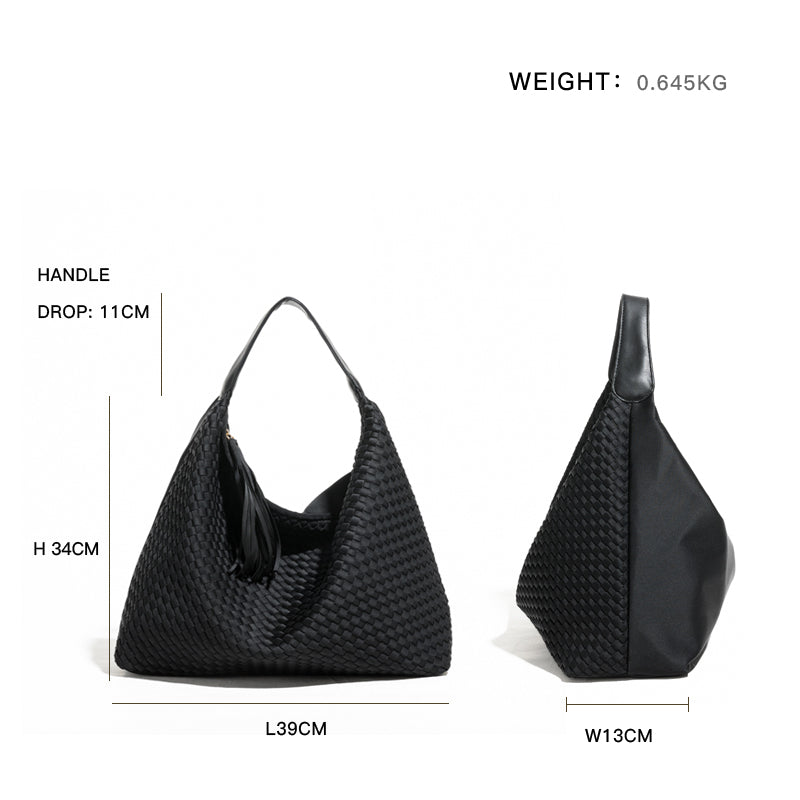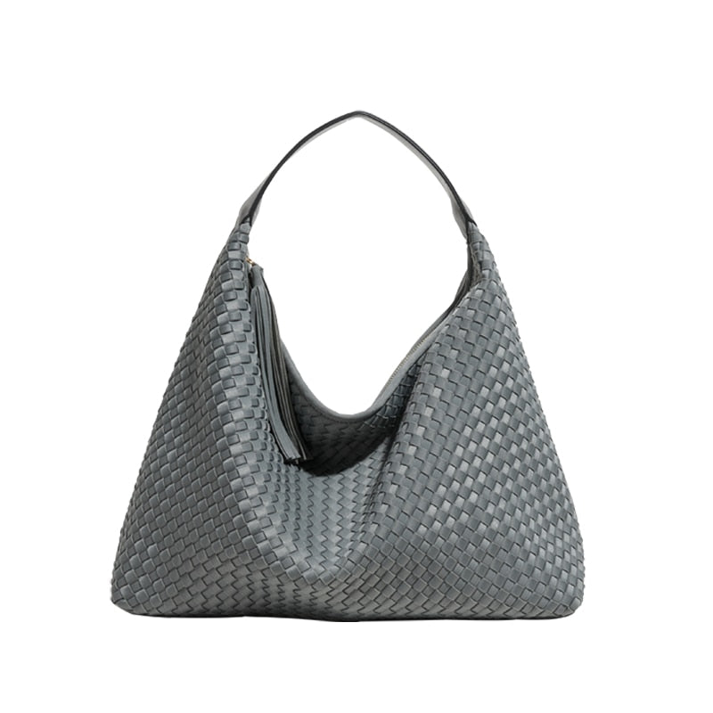 Handmade Woven Top Handle Hobo Handbag With Tassel