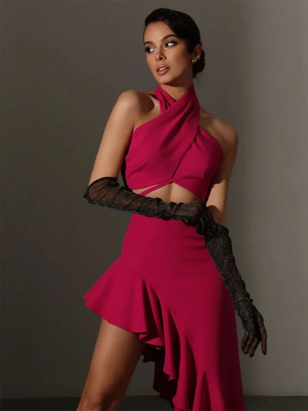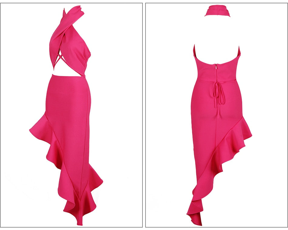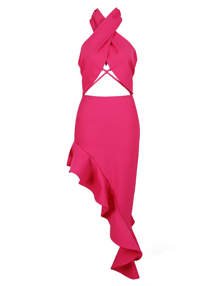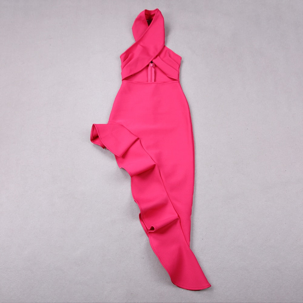 Irregular Rose Red Bandage Dress